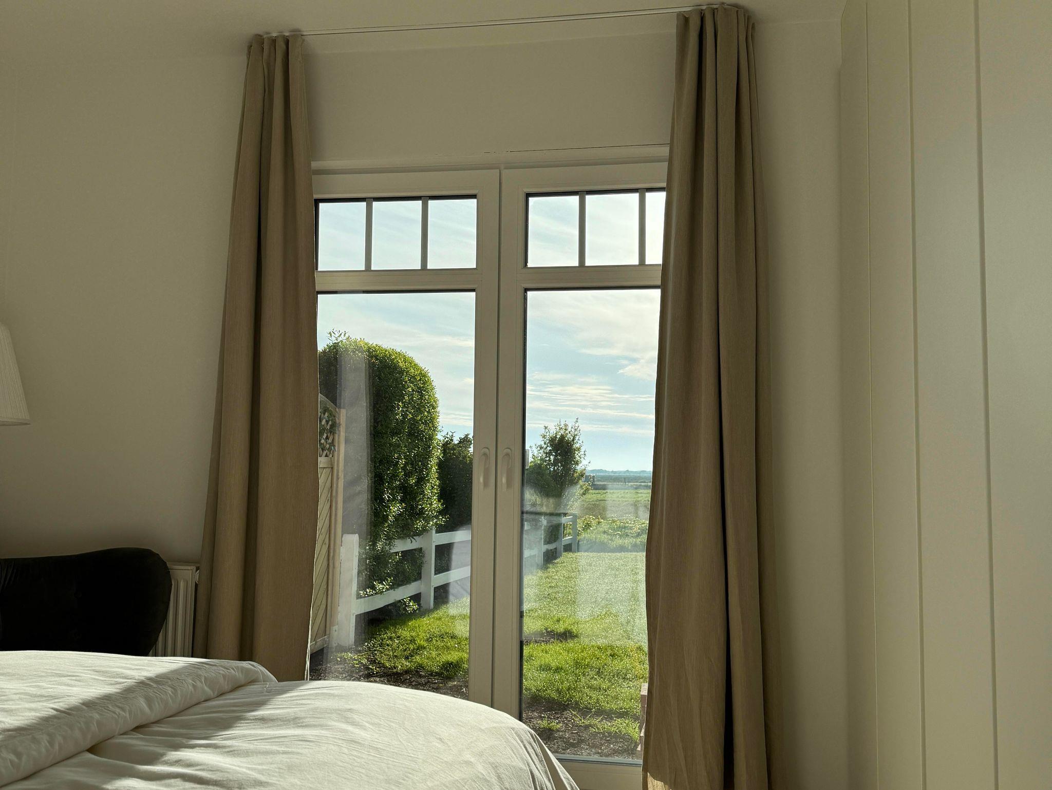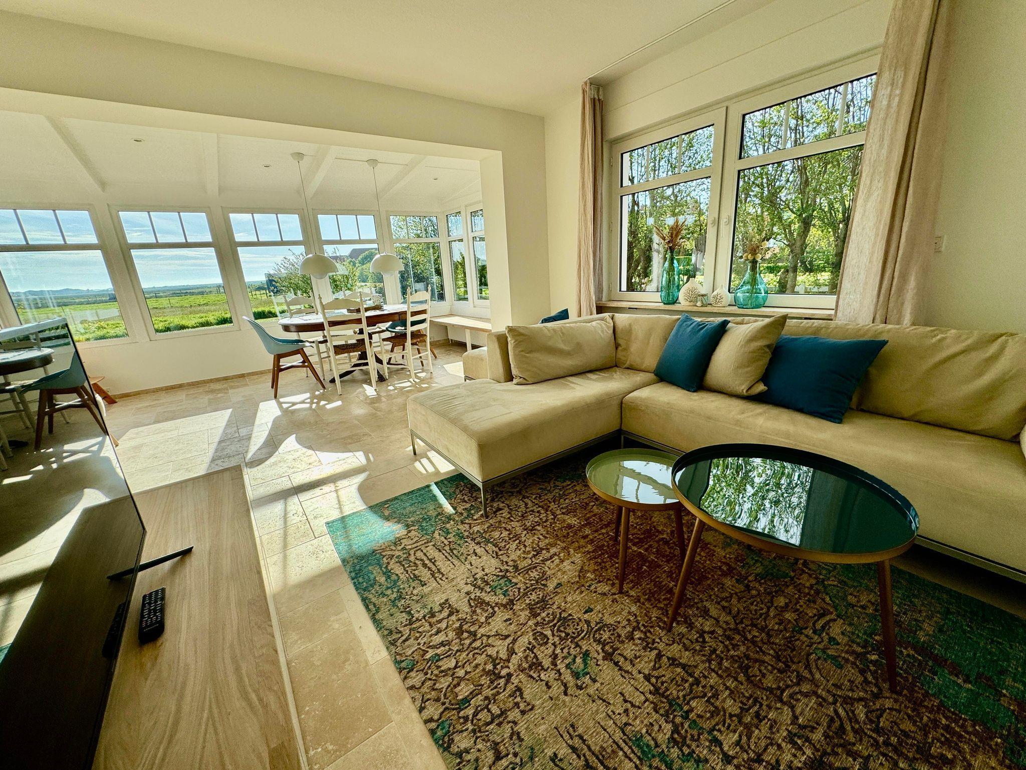 Das Polderhus bietet 115 m² modernen Komfort mit spektakulärem Blick auf Dünen und Wiesen, nur wenige Minuten vom Strand entfernt.