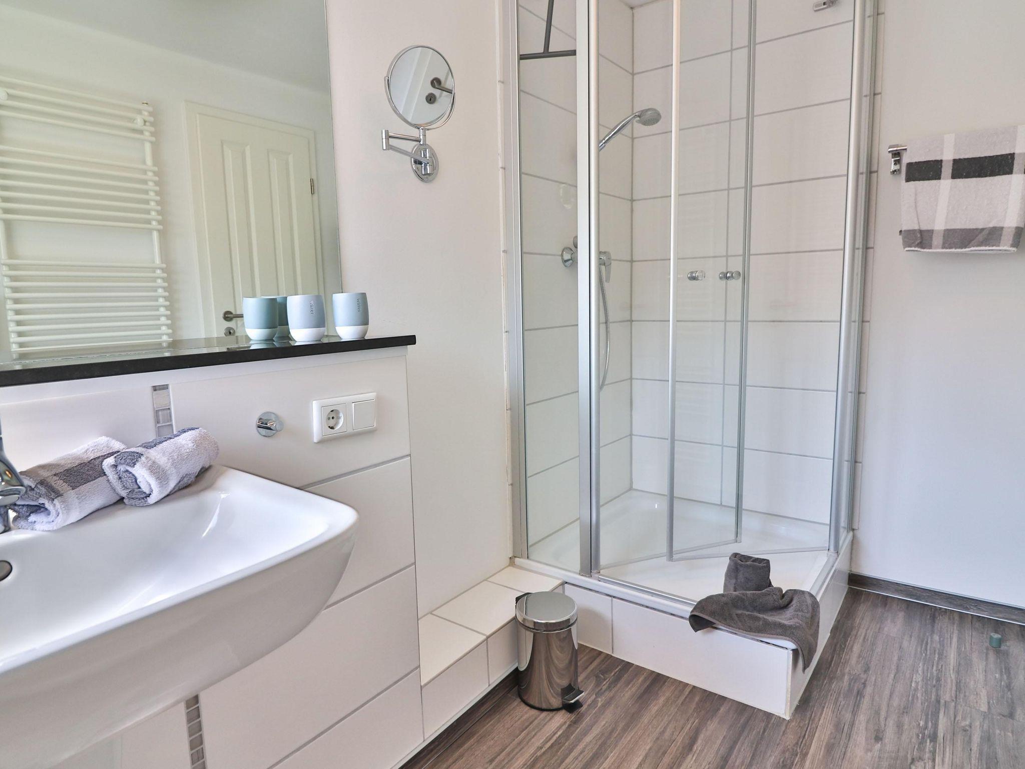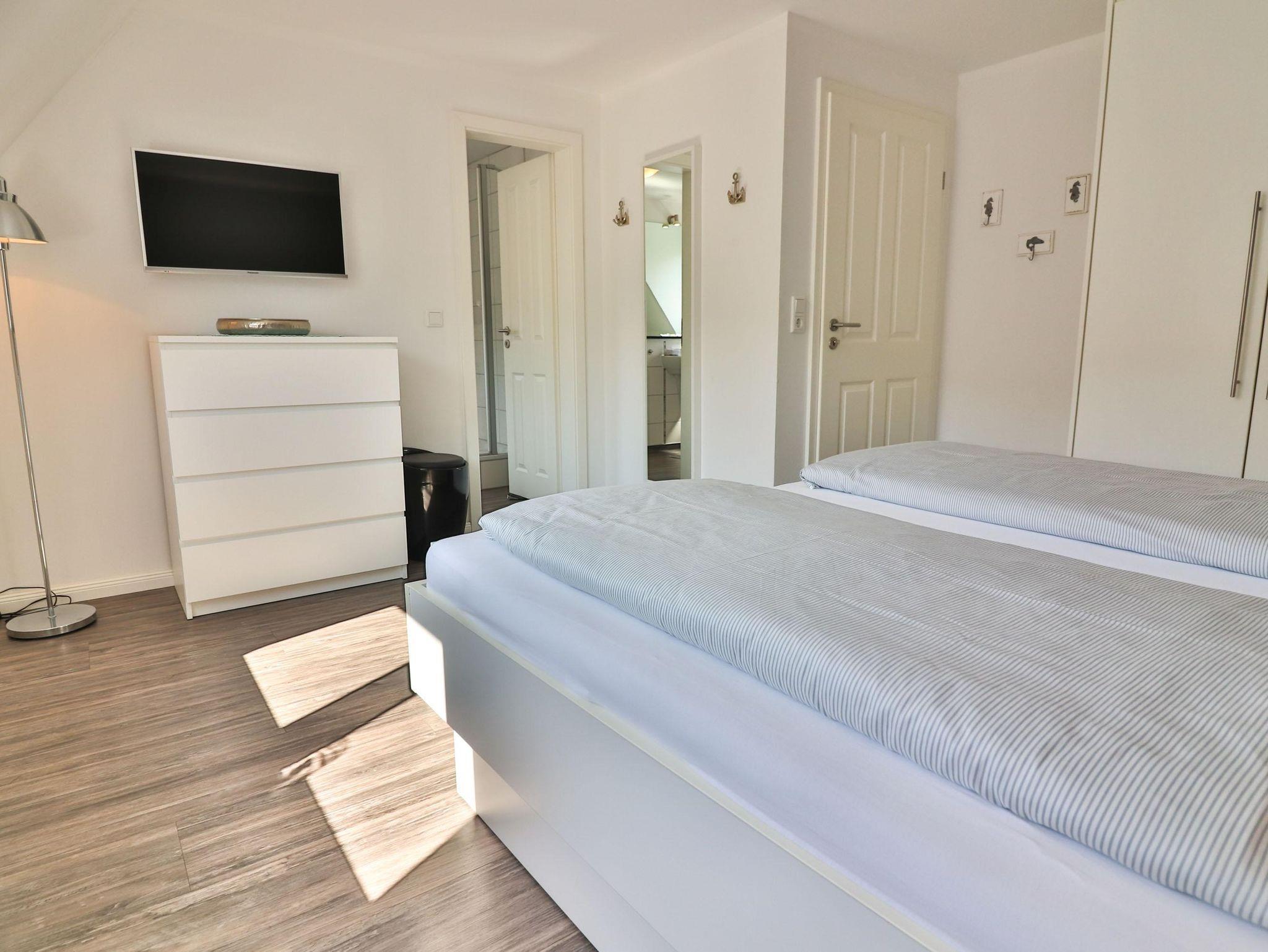 Im Obergeschoss befinden sich zwei separate Schlafzimmer, welche mit TV und jeweils eigenem Badezimmer mit Dusche und WC ausgestattet sind.