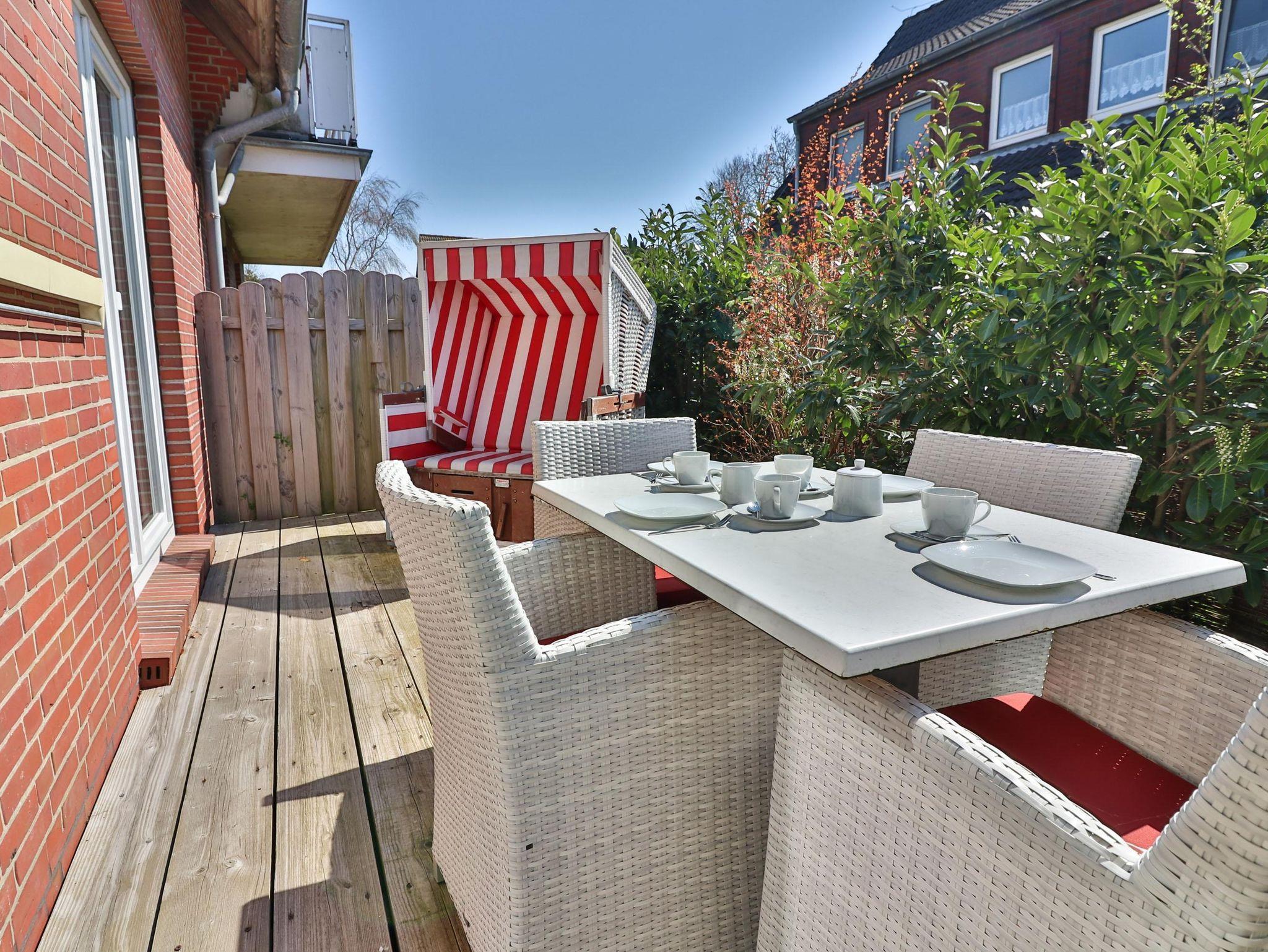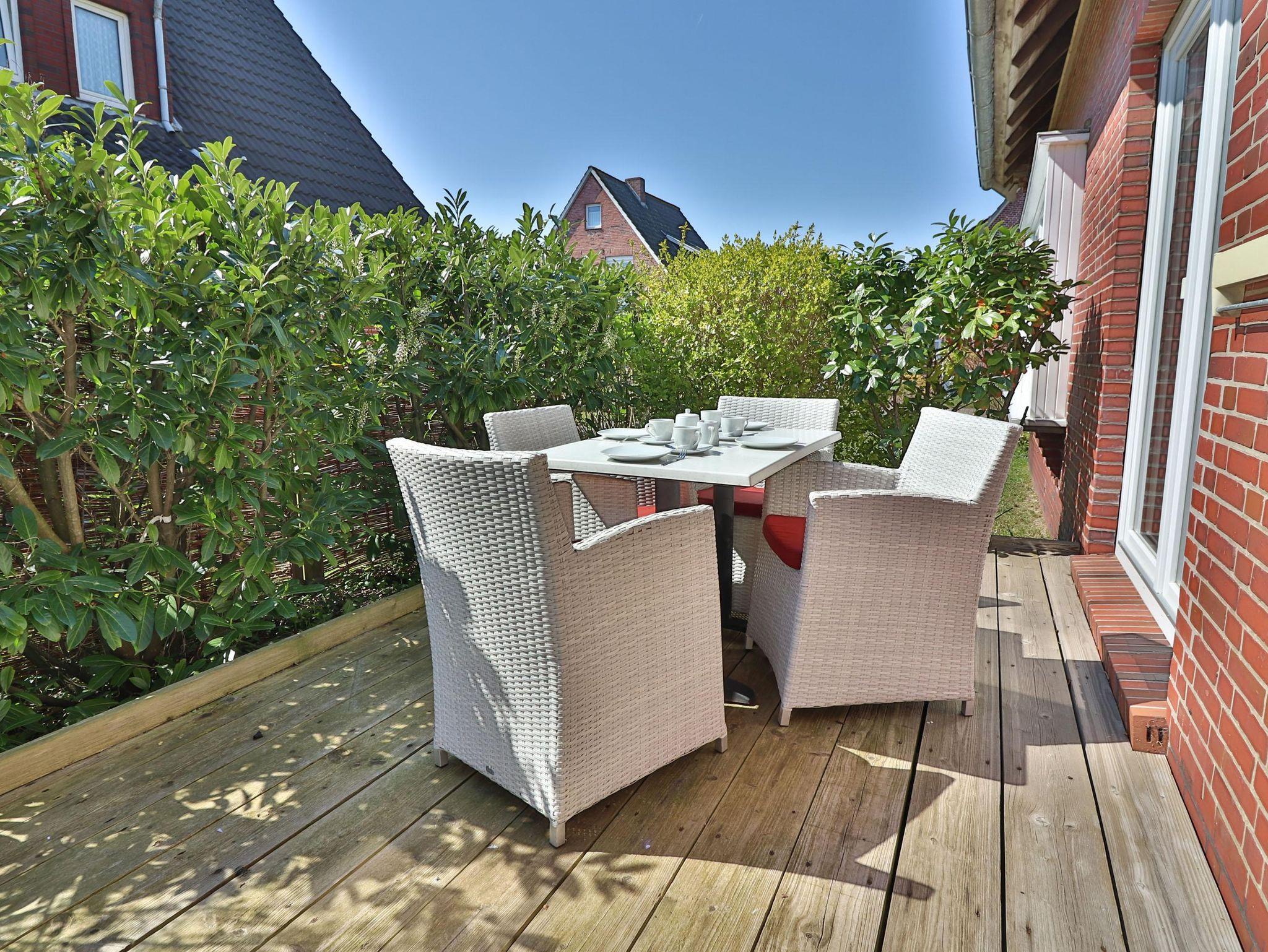 Modernes Ferienhaus auf Langeoog mit Terrasse, Strandkorb und Komfort für 4 Personen in ruhiger Lage.
