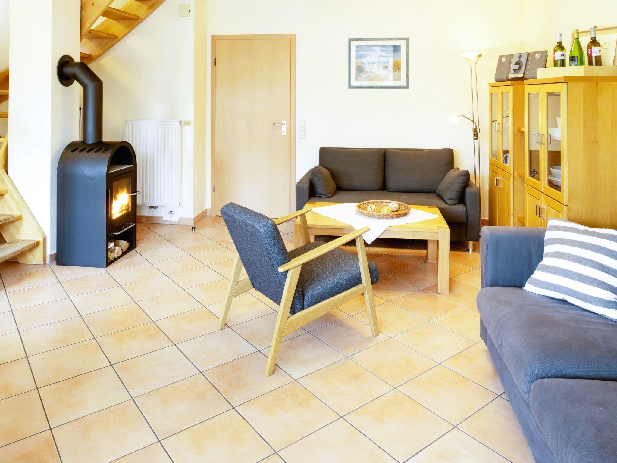 Modernes Ferienhaus De Veermaster Wohnung 1 auf Langeoog, strandnah mit Terrasse, Sauna und WLAN für erholsamen Urlaub.