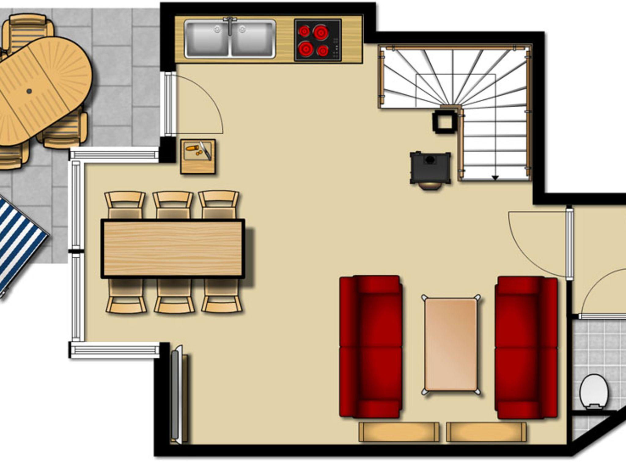 Auf 2 Ebenen bieten die Häuser mit Verandateil, Kaminofen, Terrasse und Garten eine Wohlfühl-Atmosphäre. Sie verfügen jeweils über 3 Schlafzimmer, 2 Bäder (mit Fön) und Gäste-WC sowie einen komplett eingerichteten offen gestalteten Wohn- und Küchenbereich (Backofen, Geschirrspüler, Mikrowelle, Kaffemaschine, Wasserkocher). Zusätzlich befinden sich im De Veermaster 2 kleine Apartments, die mit den Häusern oder auch separat angemietet werden können.