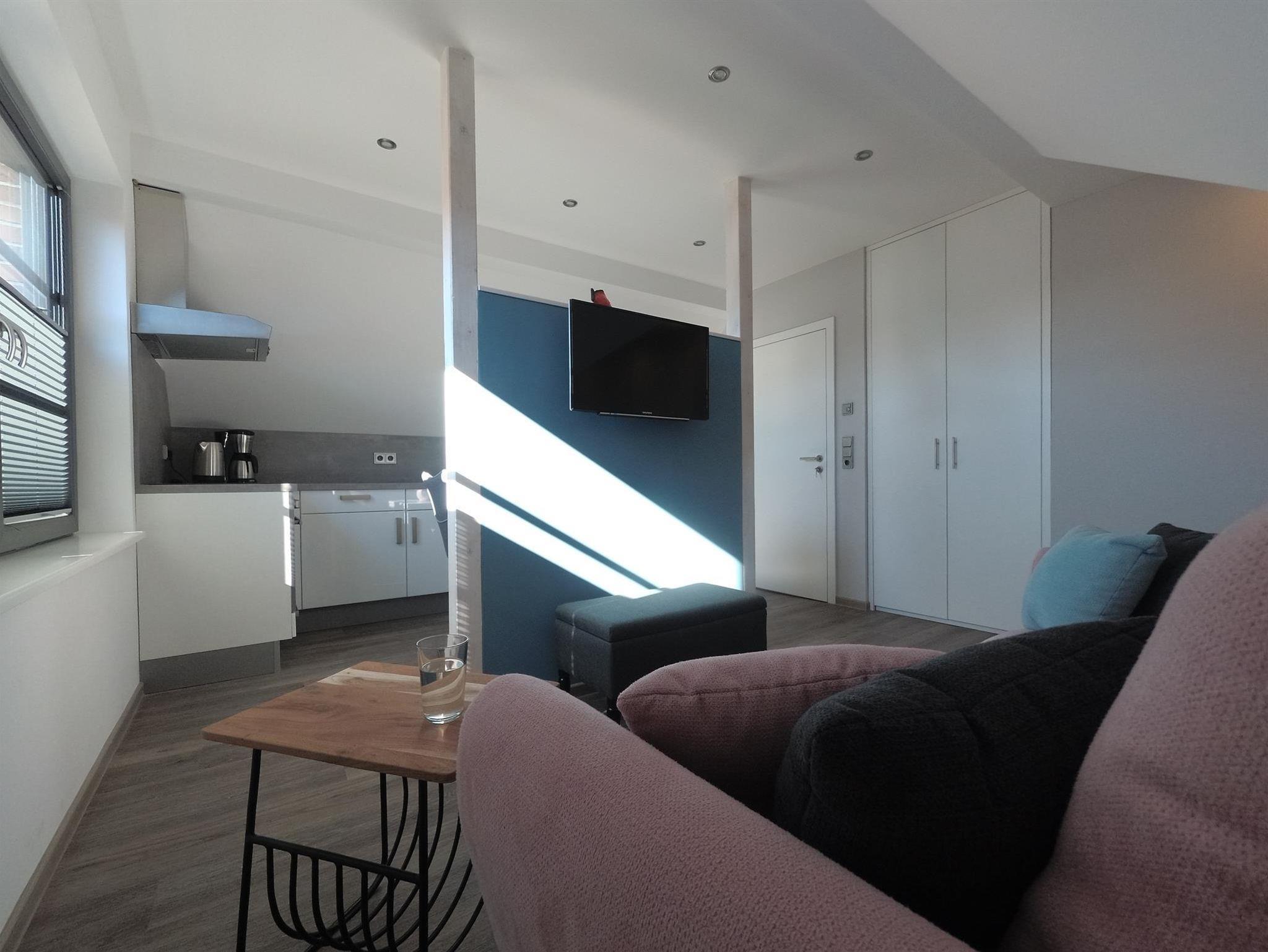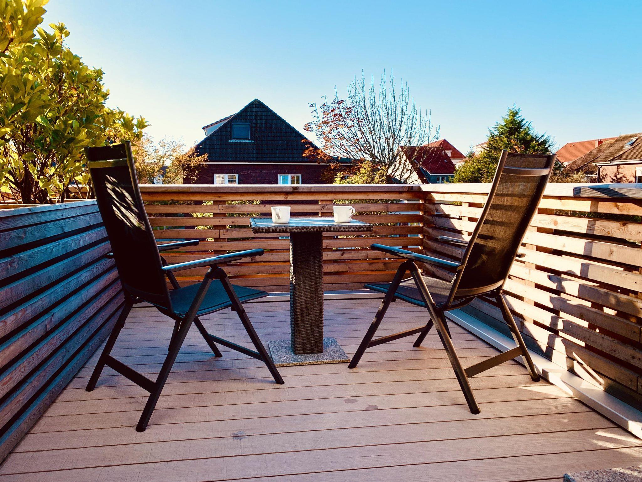Charmante 2-Personen-Wohnung Flinthörn im historischen Haus Kalmar auf Langeoog mit Balkon und moderner Ausstattung.