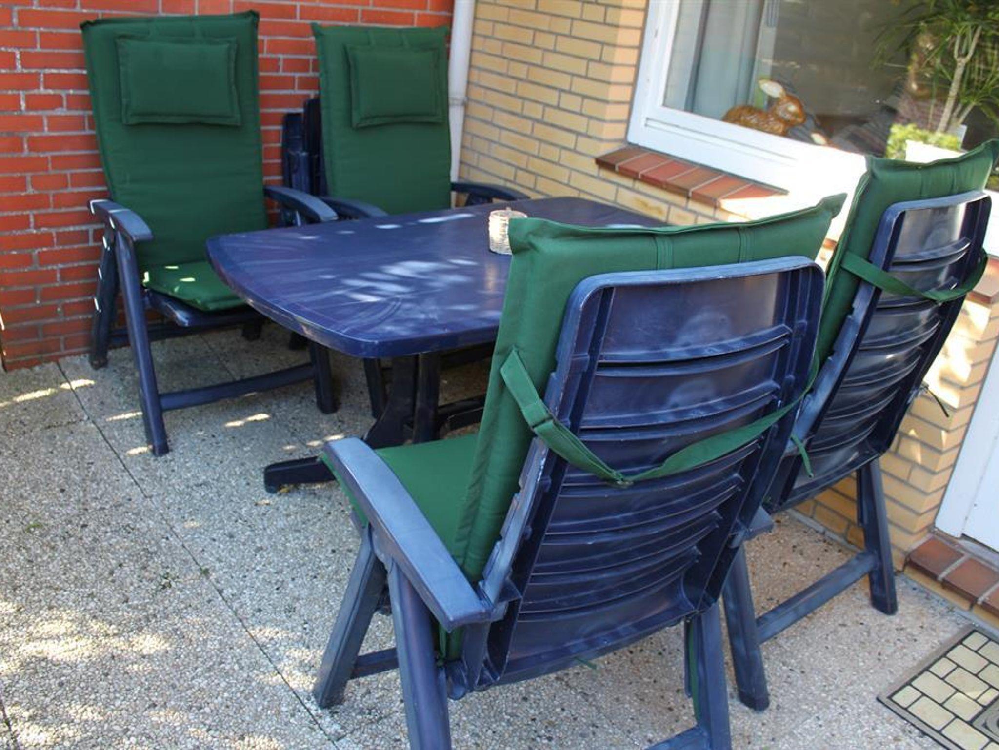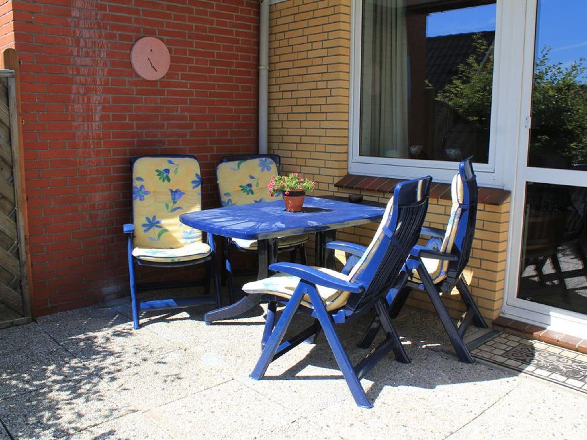 Parterrewohnung Muschel (Hasenpad 3) 62 qm, sep. Kinder-Schlafzimmer, Wohn-Esszimmer mit Küche & Sitzgruppe, wohn-schlafkombinierter Raum mit Ehebett und Sofagruppe, sep. Dusche/WC, Innenflur mit Garderobe, direkt begehbare überdachte Südterrasse mit Sitzgruppe usw.