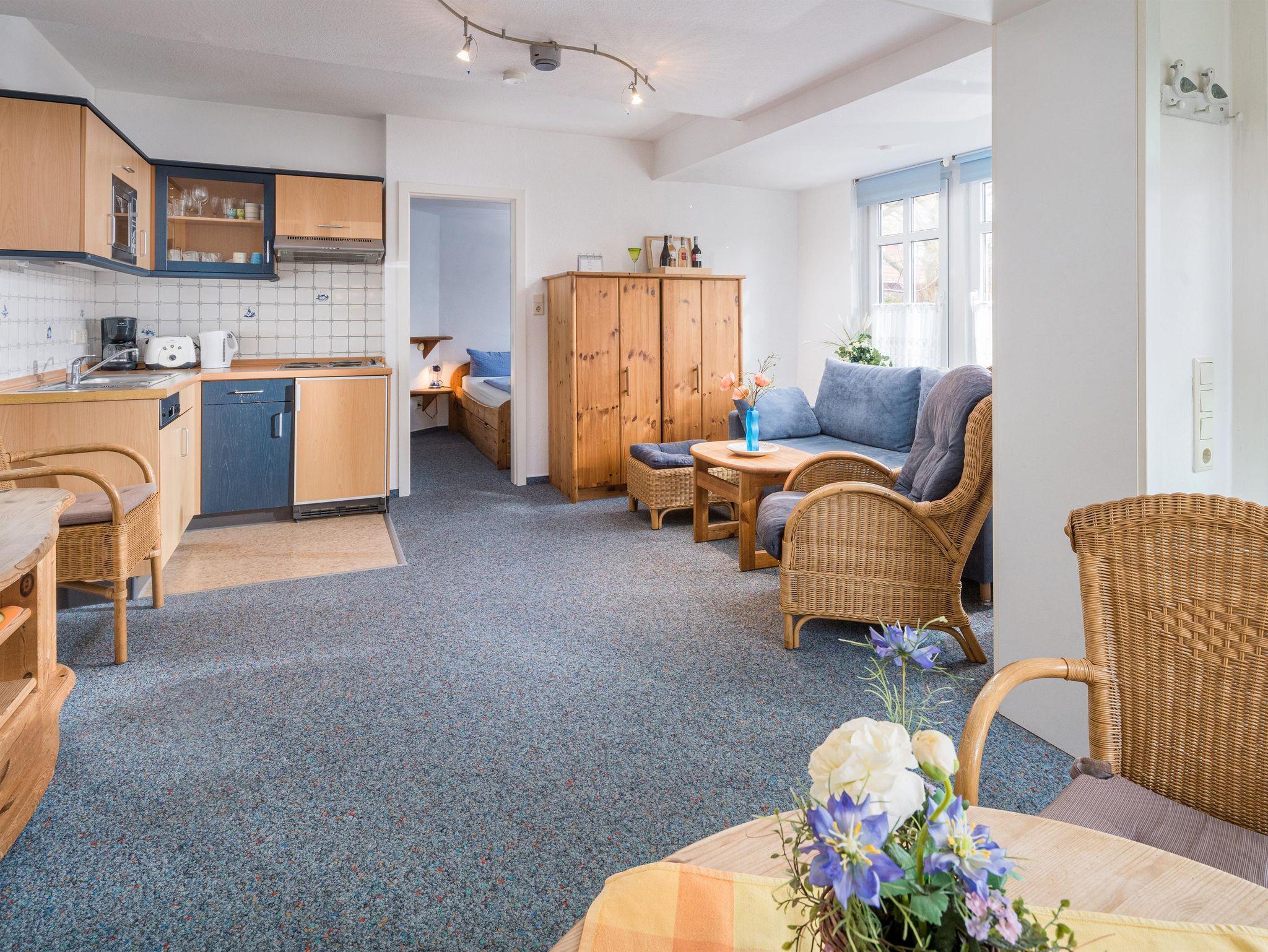 Us Freedom Wohnung 1 Wohnungsbeschreibung: Wohnungsgröße: 32 m² Diese Wohnung ist 32 m² groß und ideal für einen Urlaub zu zweit. Ein gemütlich gestalteter offener Wohn-/Essbereich mit Blick in den Garten sorgt für viel Atmosphäre. Die Küchenzeile ist klein, aber modern. Mikrowelle ist vorhanden. Im Schlafzimmer befindet sich ein großes Doppelbett, das innenliegende Bad ist freundlich, hell und modern ausgestattet. Kinderbett auf Anfrage und auch nur im Wohnbereich möglich. Personenzahl: 2 Schlafzimmer: 1 Kinderbetten: 0 Wohnungsausstattung: · Waschmaschine / Trockner · Spülmaschine · Telefon · Terrasse