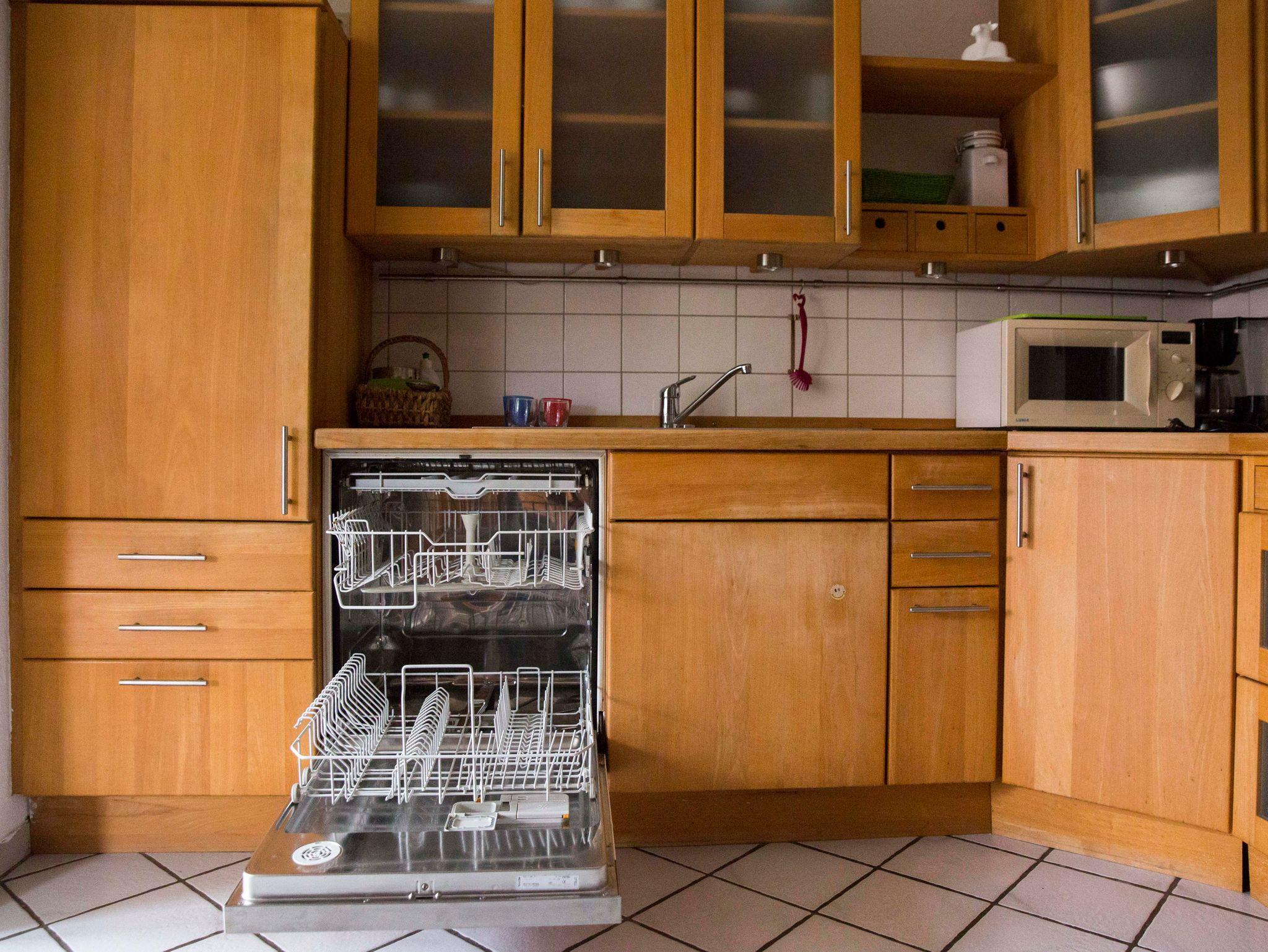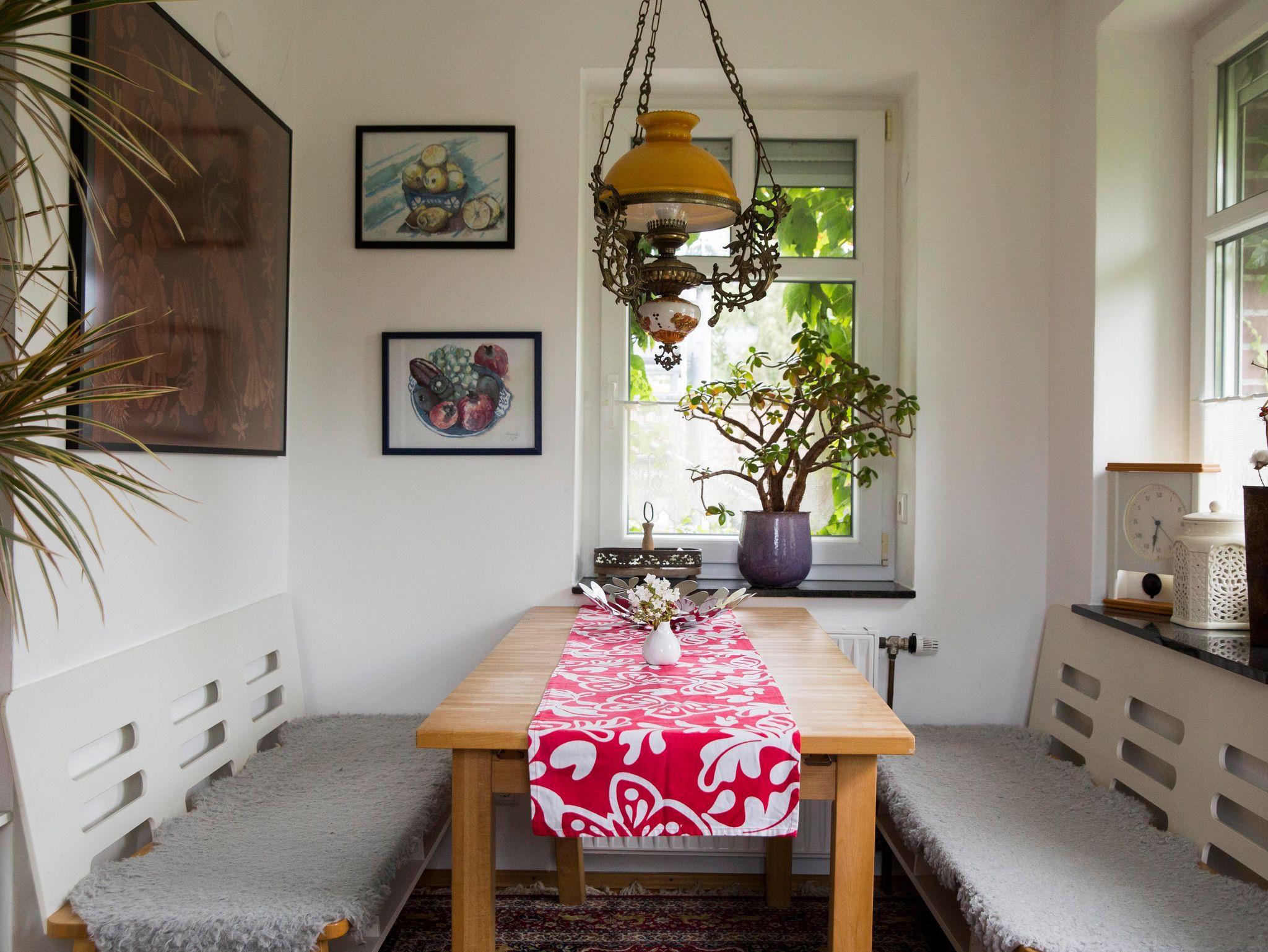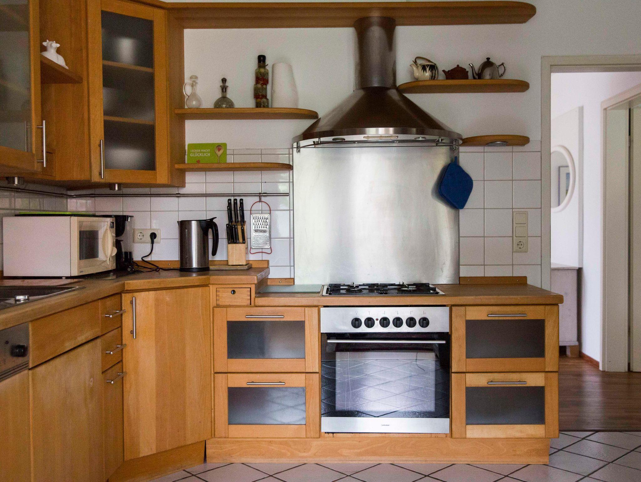 Das Herz der Wohnung ist die großzügige Küche mit 4-Flammenherd, Brat- und Backröhre: Hier kann man wunderbare Gerichte kochen oder sich zum Teetrinken in die Sitzecke im hellen Erker zurückziehen.