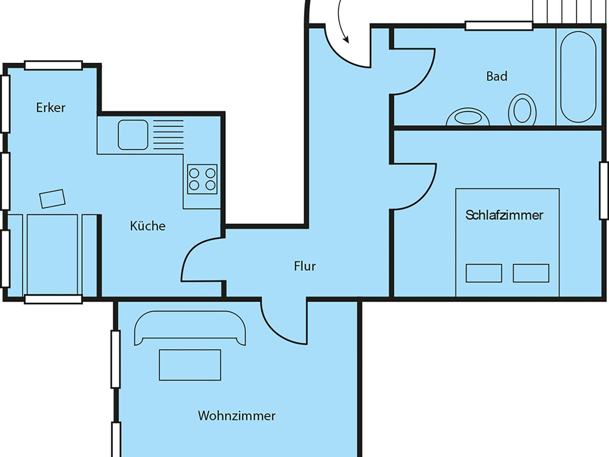 Die Wohnung Pferdekoppel befindet sich im Vorderhaus – mit eigenem Eingang im Hochparterre (5 Treppenstufen). Mit 60 m² ist sie ideal für zwei Erwachsene.