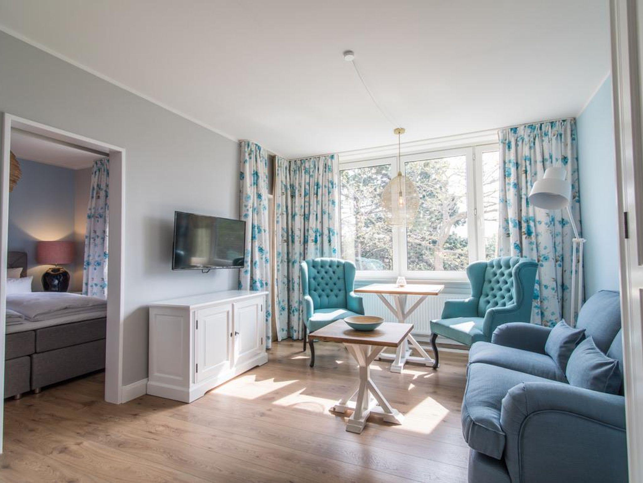 Suite Typ 1, 38 qm Klein, aber fein, ist diese 38 qm große Suite mit Balkon. Ideal für Singles oder max. 2 Erwachsene. Ein klares helles Design an Ausstattung lässt Sie sicher wie zu Hause wohnen und wohl fühlen.