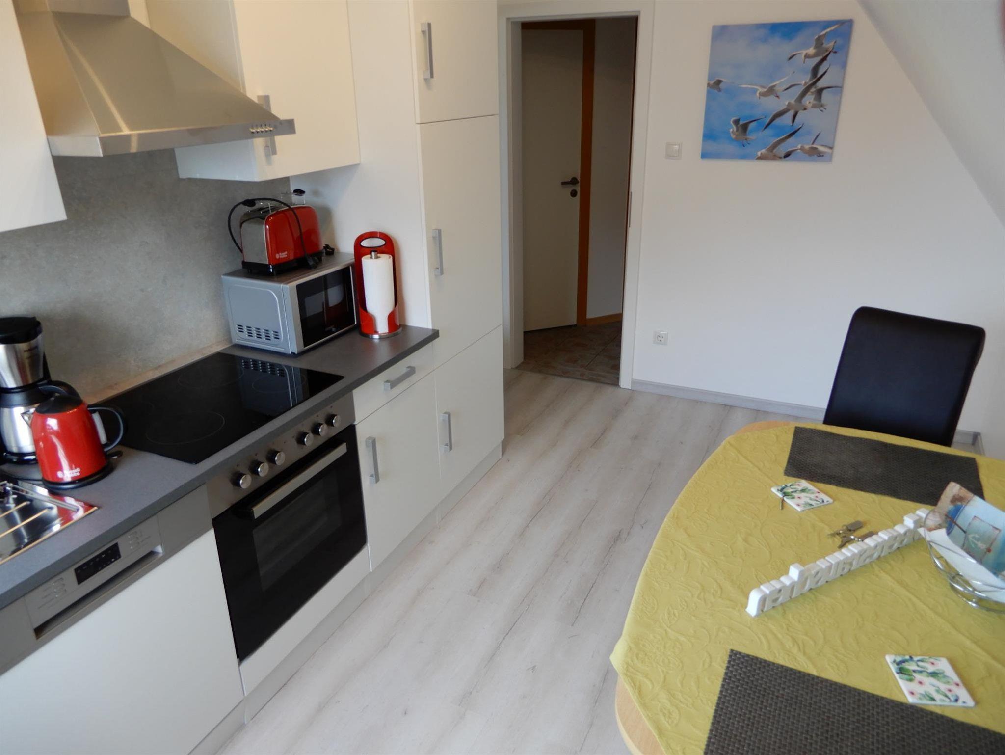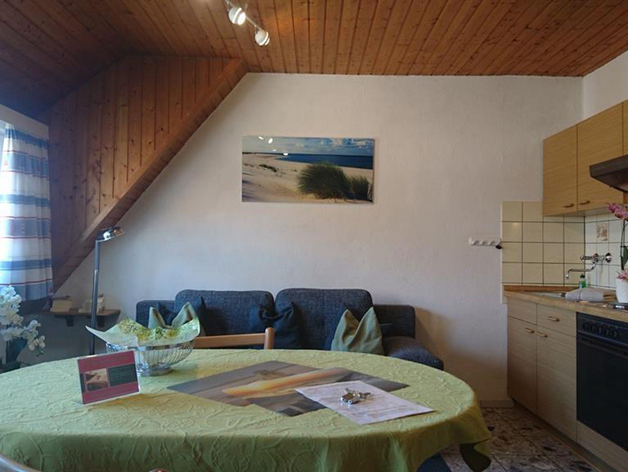 Oberwohnung Sandbank (Hasenpad 5) 40 qm, sep. Schlafzimmer mit Ehebett, Wohn-Esszimmer, sep. Dusche/WC, Südbalkon mit Strandkorb, Sitzgruppe usw.