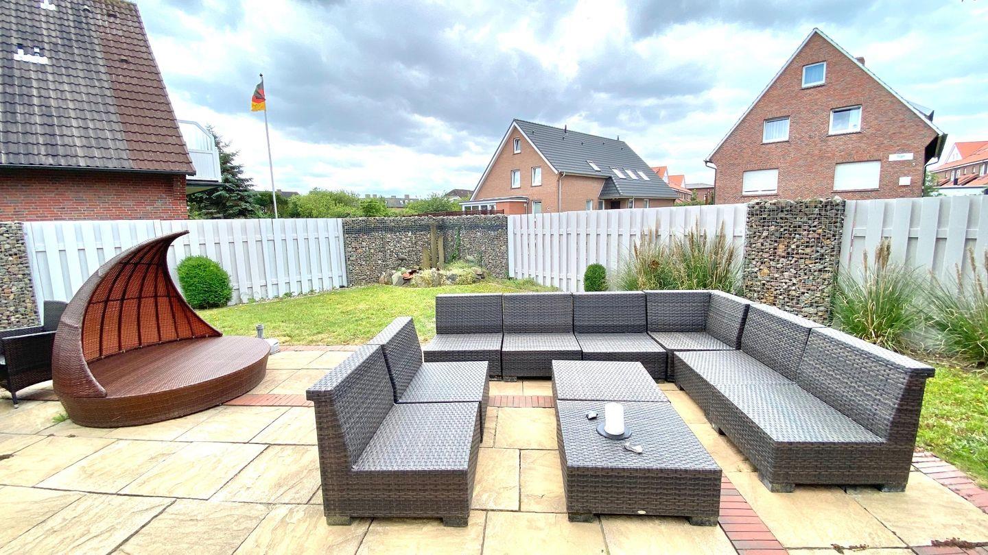 hat eine große kuschelige Wohnlandschaft und Sie gelangen von dort aus in den schön angelegten Garten - dieser bietet natürlich eine Sitzecke und Gartenliegen zum verweilen. Außerdem gelangen Sie vom Wohnbereich ins Esszimmer mit großem Holztisch und gemütlichen Sesseln zum täglichen Schlemmen mit der Familie.