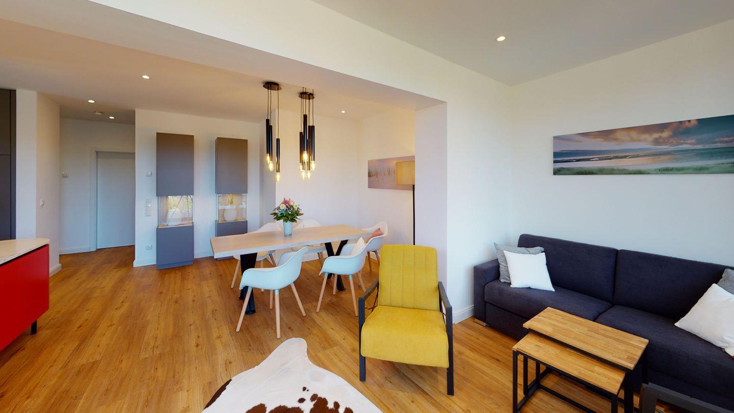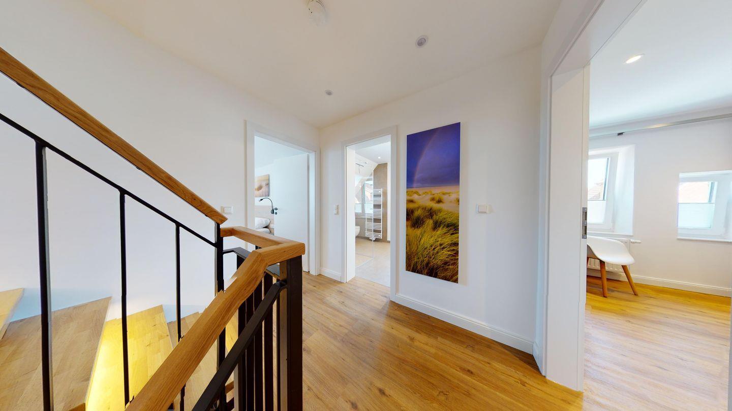 Die Ferienwohnung 2 erstreckt sich über 2 Etagen mit eigenem Eingangsbereich im Hochparterre des Hauses.