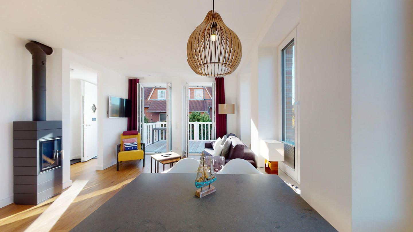 Die Ferienwohnung 3 erstreckt sich über 2 Etagen mit eigenem Eingangsbereich im Hochparterre des Hauses.