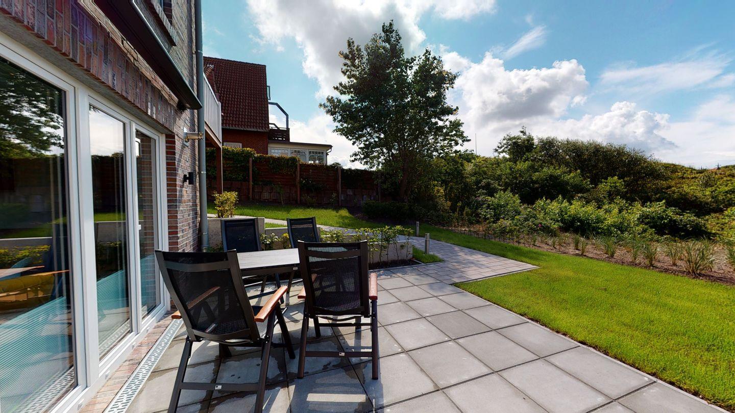 Barrierefreie Ferienwohnung mit Sauna und Garten auf Langeoog im traditionellen Kapitänshaus.