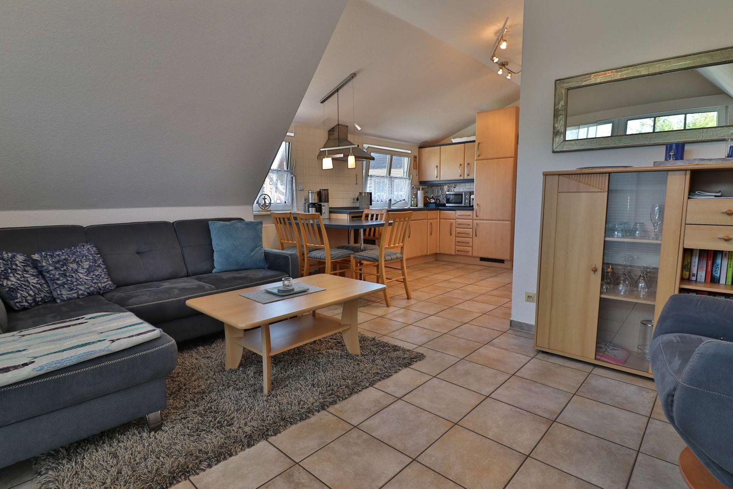 Die Ferienwohnung „Kiek rin bi Kati - Ferienwohnung 4“ empfängt Sie in ruhiger Lage im Hinterhaus von Kiek rin bi Kati auf der Nordseeinsel Langeoog im Melkerpad 8. Der Eingang befindet sich im Erdgeschoss. Vom Eingangsbereich, der nur für die Gäste der Wohnung 4 zugänglich ist, führt eine Treppe hinauf zur Wohnung. Mit einer Größe von 65 m² bietet diese Nichtraucherwohnung ausreichend Platz für bis zu vier Personen und richtet sich besonders an Familien, Paare sowie Gäste mit Haustier – maximal eine Fellnase ist nach vorheriger Absprache gestattet.