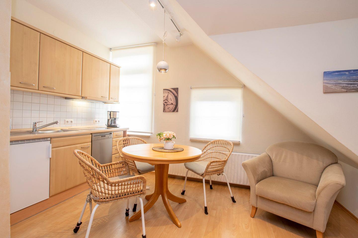 Gemütliche Ferienwohnung Nestchen auf Langeoog mit voll ausgestatteter Küche und Baby-Ausstattung.