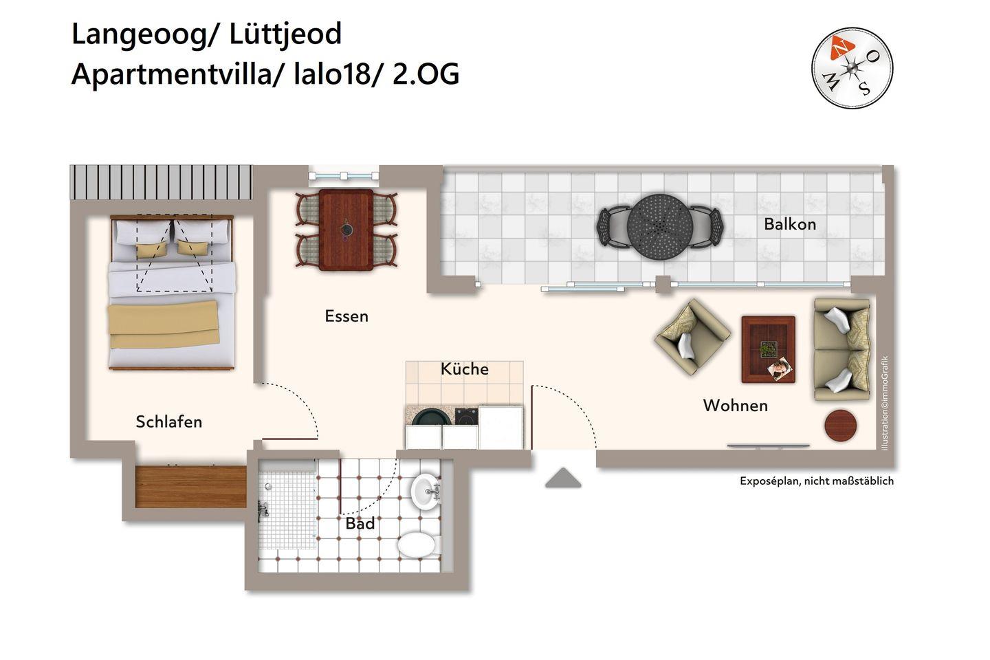 Charmantes 2-Zimmer-Apartment mit Loggia auf autofreier Nordseeinsel Langeoog.