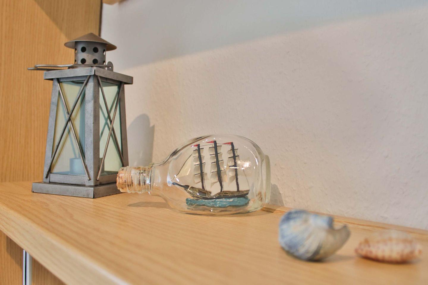 Die Ferienwohnung „Inselzeit“ befindet sich im Obergeschoss eines Hauses in zentraler Lage. Sie liegt auf der von der Straße abgewandten Seite des Hauses und ist deshalb sehr ruhig. Mit 60m² teilt sie sich auf in zwei Schlafzimmer, einen großen Wohn-/Essbereich, eine Küche, ein Badezimmer und einen Balkon mit Blick ins Grüne. Sie ist für drei Personen geeignet. Bei Bedarf kann eine weitere Person auf dem ausklappbaren Sessel im Schlafzimmer schlafen.