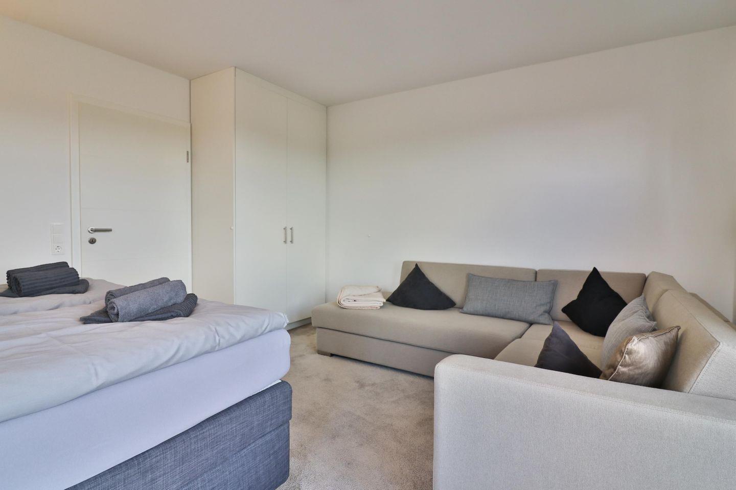 Auf drei Etagen finden Sie insgesamt drei gemütliche Schlafzimmer, zwei Badezimmer und ein Gäste-WC, sodass Sie und Ihre Lieben ausreichend Privatsphäre genießen können. Im Obergeschoss erwarten Sie zwei einladende Schlafzimmer – eines mit einem komfortablen Boxspringbett (180 x 200 cm), Fernseher und einem geräumigen Kleiderschrank sowie einer gemütlichen Sofaecke zum Entspannen. Das zweite Schlafzimmer ist mit zwei Einzelbetten (je ca. 90 x 200 cm), einem Fernseher und einem Schreibtisch ausgestattet – ideal für erholsame Nächte und Momente der Ruhe.