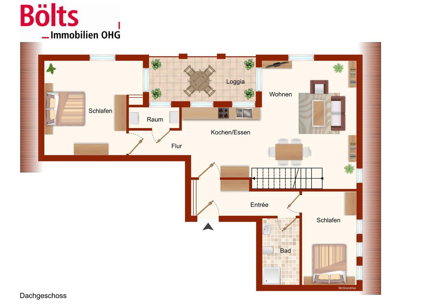 Das Dachgeschoß, welches man über die sichtbare Treppe erreicht, ist nicht buchbar.