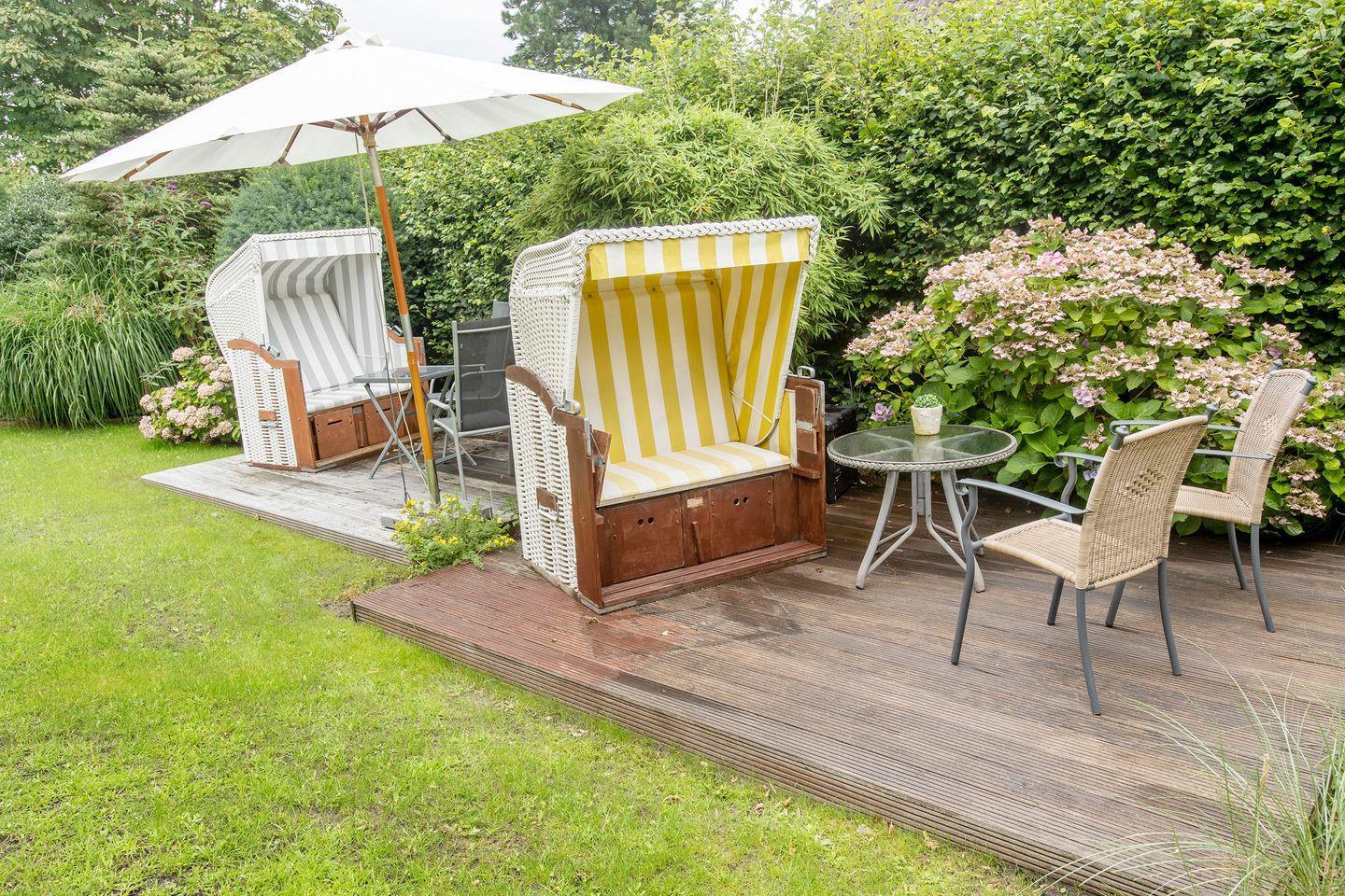 Gemütliche Ferienwohnung "OFDAK" in parkähnlicher Anlage auf Langeoog mit maritimem Stil und Terrasse im Garten.