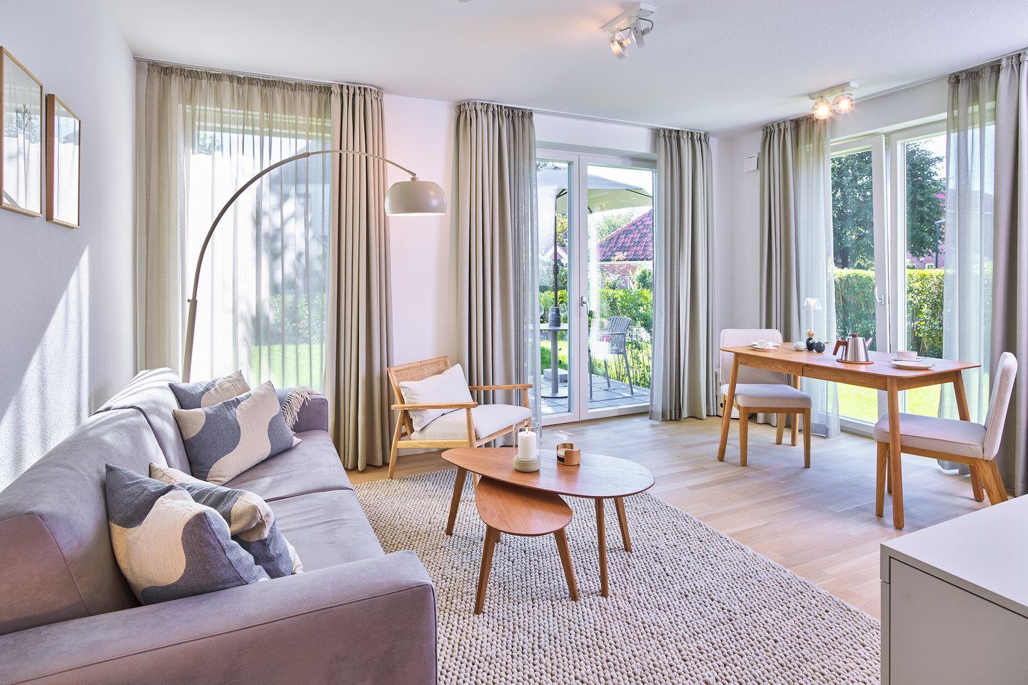 Charmantes Apartment mit Terrasse im Herzen von Langeoog, ideal für einen erholsamen Nordseeurlaub.