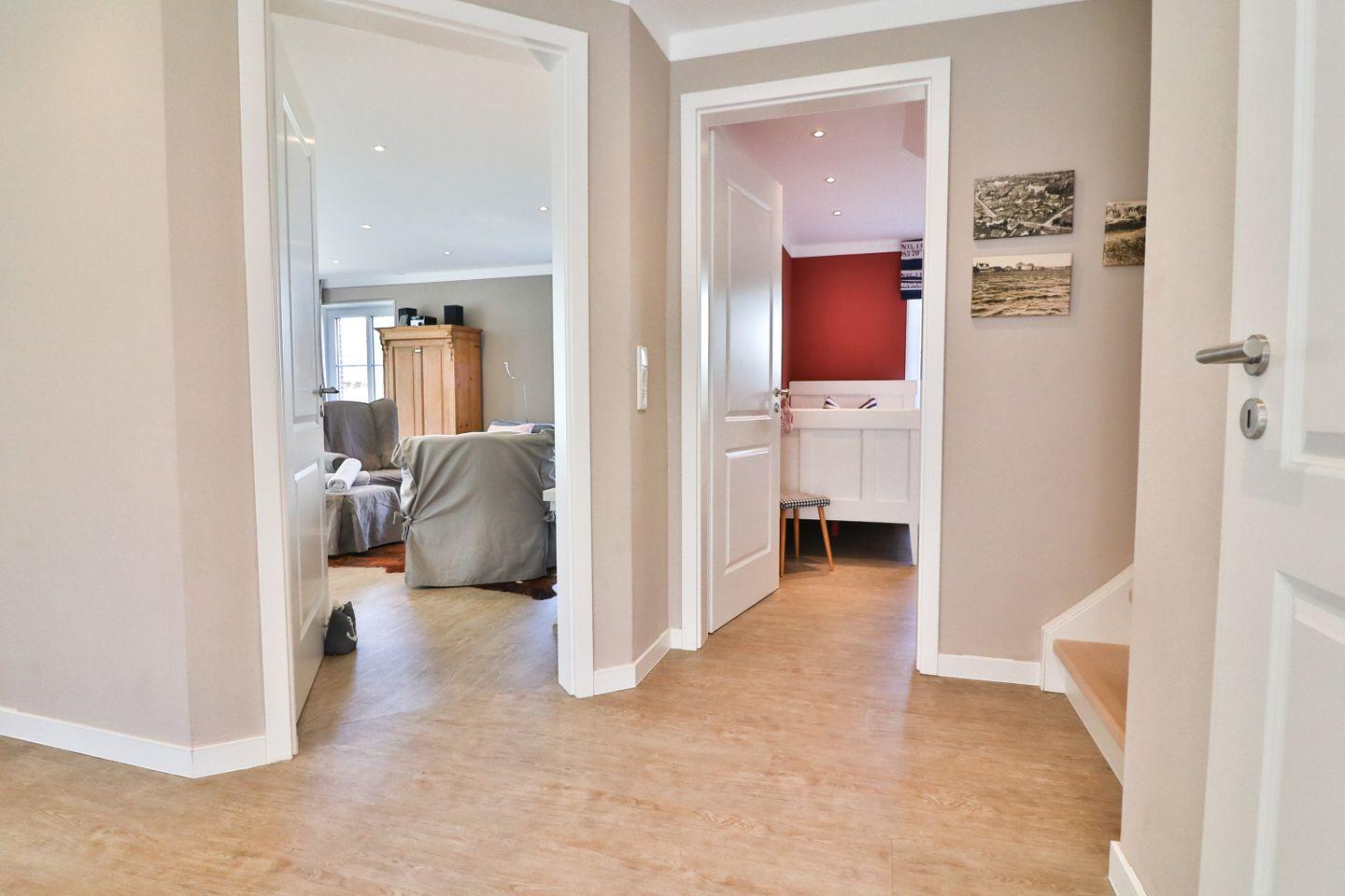Für Ihren Komfort stehen Ihnen im “Elführtje” zwei Badezimmer mit ebenerdiger, offener Dusche und WC zur Verfügung, wodurch morgendliche Hektik vermieden wird. Zusätzlich gibt es ein Gäste-WC im Erdgeschoss.