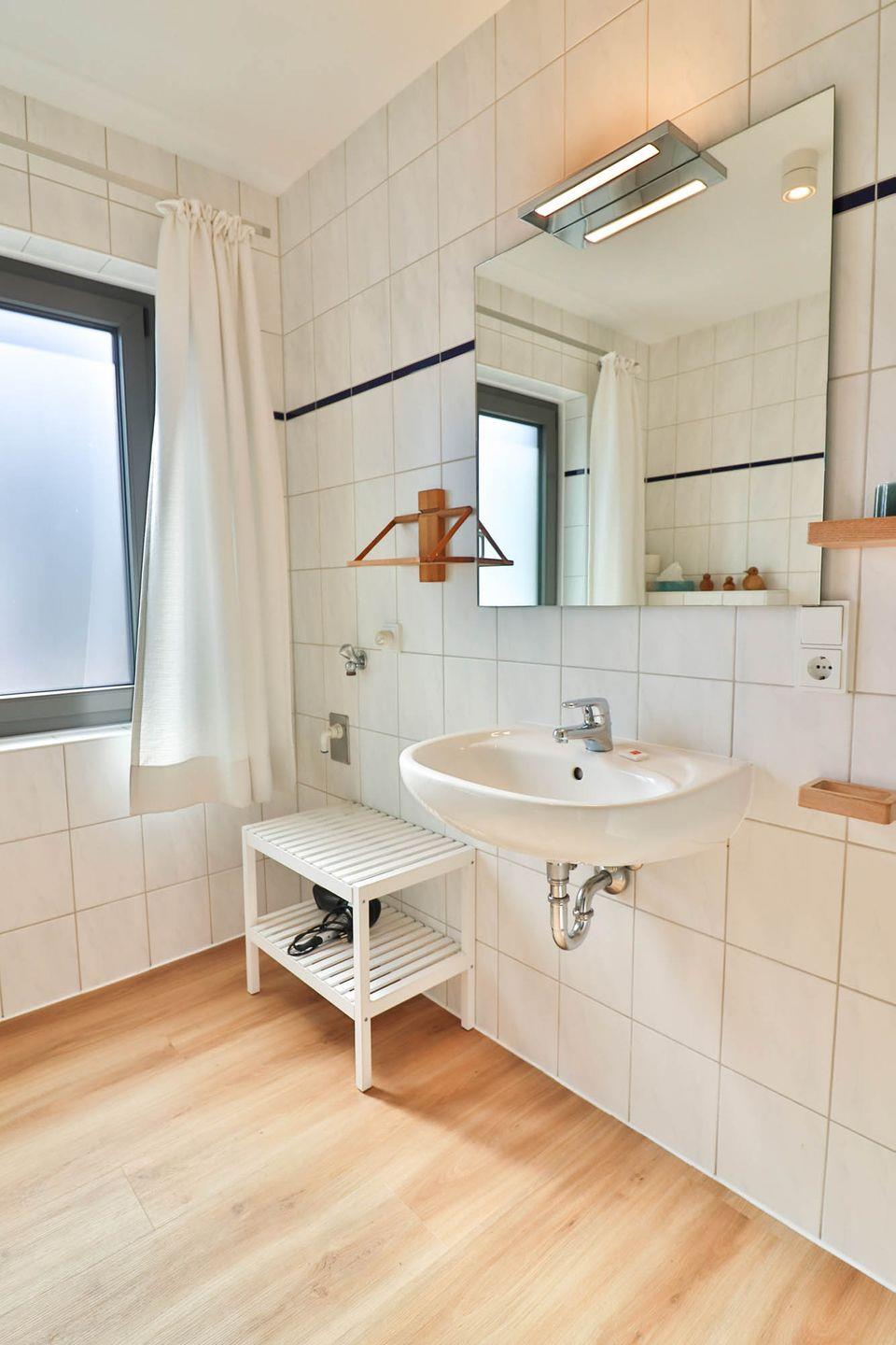 Im Badezimmer erwartet Sie eine Dusche sowie ein WC und ein Waschbecken. Eine Handtuchheizung sorgt für kuschelig warme Handtücher nach dem Duschen.