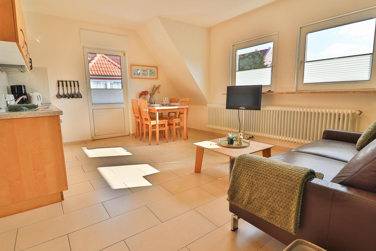 Die lichtdurchflutete Wohnung 3 im Obergeschoss des Hauses „Libelle“ bietet Platz für bis zu 4 Personen. Auf einer Fläche von 55 qm finden Sie alles, was Sie für Ihren Wohlfühl-Urlaub benötigen. Die Wohnung wurde im Frühjahr 2025 teilweise renoviert.