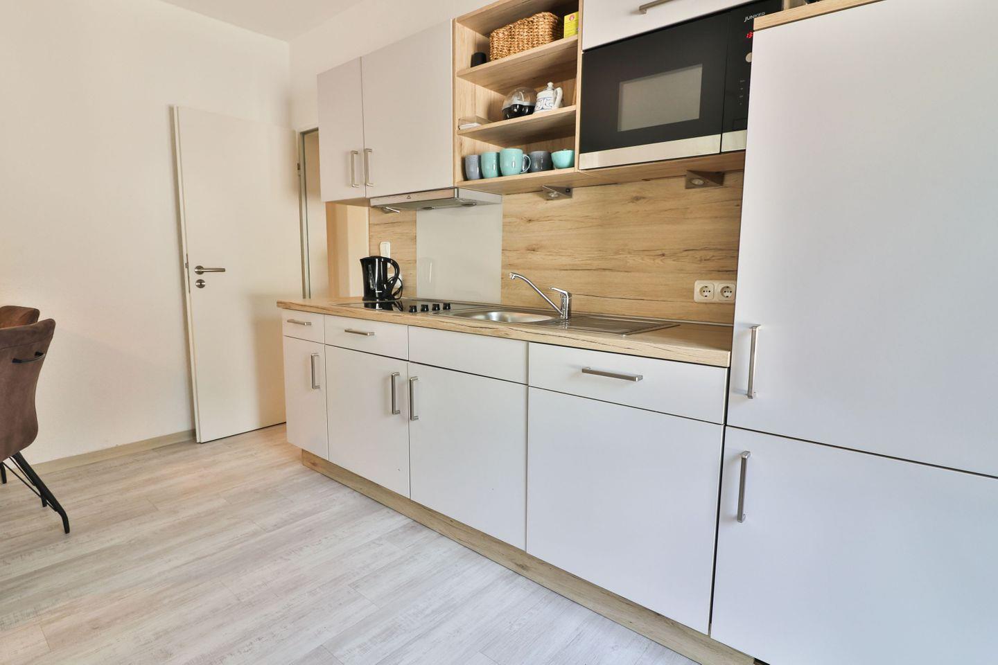 Gemütliche Ferienwohnung Robbe auf Langeoog mit Terrasse, modernem Bad und voll ausgestatteter Küche für erholsamen Nordseeurlaub.