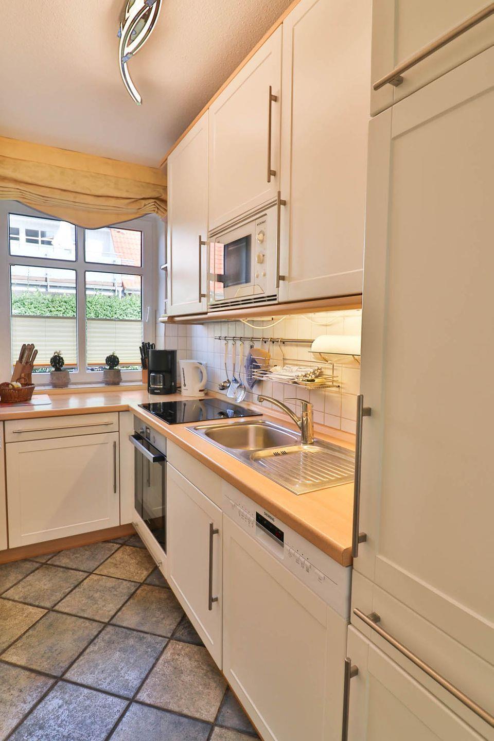 Die voll ausgestattete Küche lässt keine Wünsche offen: Herd, Backofen, Kühlschrank mit Gefrierfach, Geschirrspüler, Mikrowelle, Kaffeemaschine, Wasserkocher und Toaster sind nur einige der zahlreichen Annehmlichkeiten.