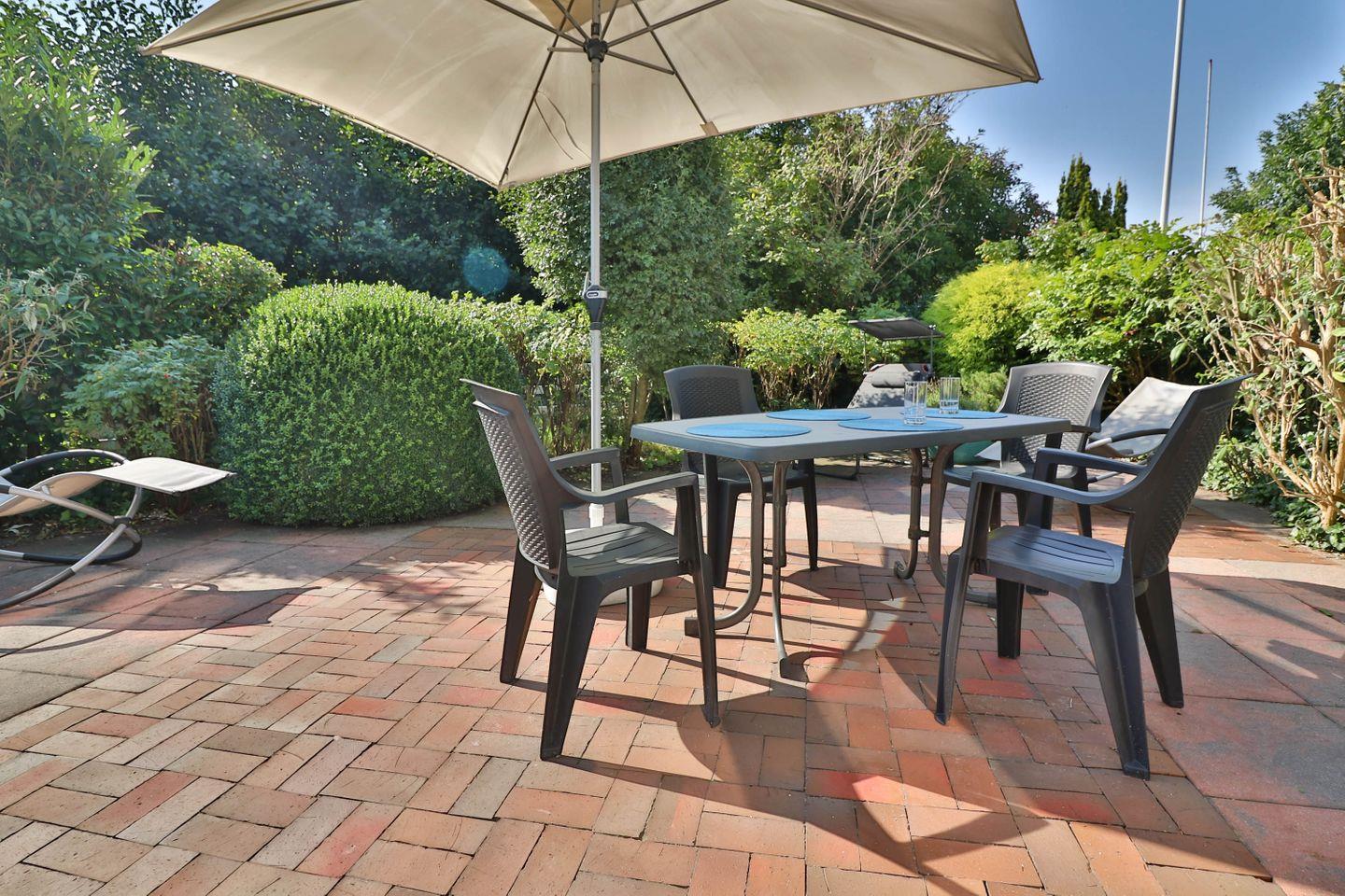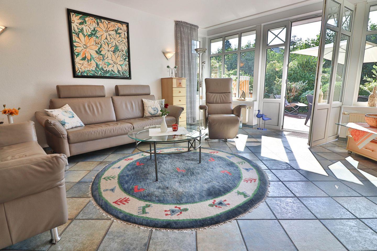 Der offene Wohn- und Essbereich lädt zu geselligen Abenden ein und bietet direkten Zugang zur sonnigen Terrasse. Hier können Sie in absoluter Privatsphäre entspannen – ob im Strandkorb, auf Sonnenliegen oder beim gemeinsamen Essen am Gartentisch.