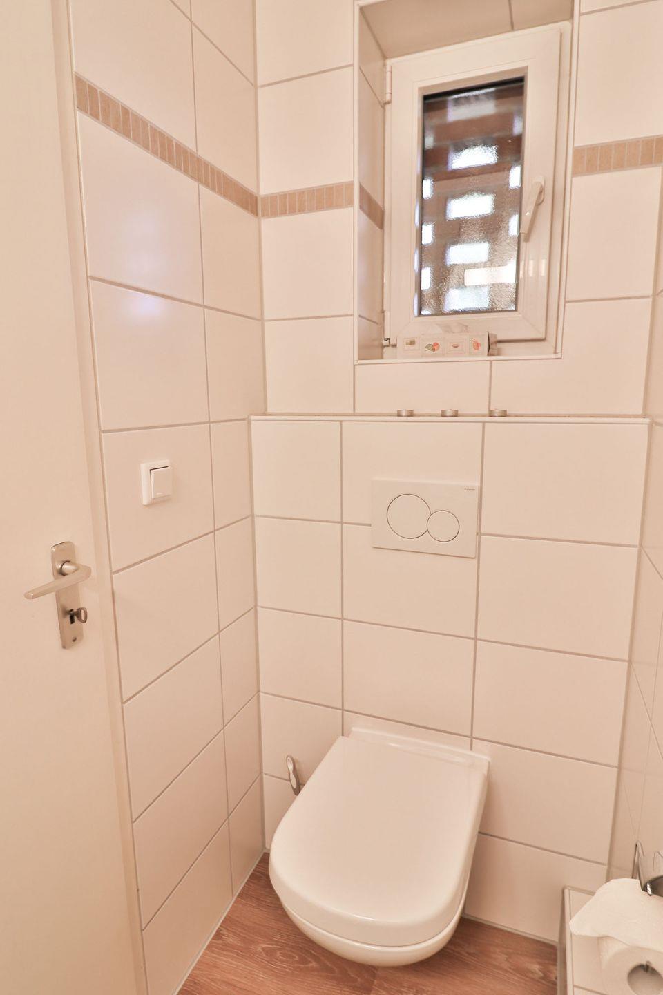 Im Erdgeschoss befindet sich das großzügige Wohnzimmer, das mit einem Kamin, Fernseher und einem einladenden Essbereich ausgestattet ist. Die angrenzende Küche bietet alles, was man für die Selbstversorgung im Urlaub benötigt. Vom Wohnzimmer aus gelangt man direkt auf die Westterrasse, die mit Gartenmöbeln und einem Rasenanteil zum Verweilen einlädt. Zusätzlich gibt es im Erdgeschoss ein Gäste-WC, das sich direkt neben dem Eingang befindet.