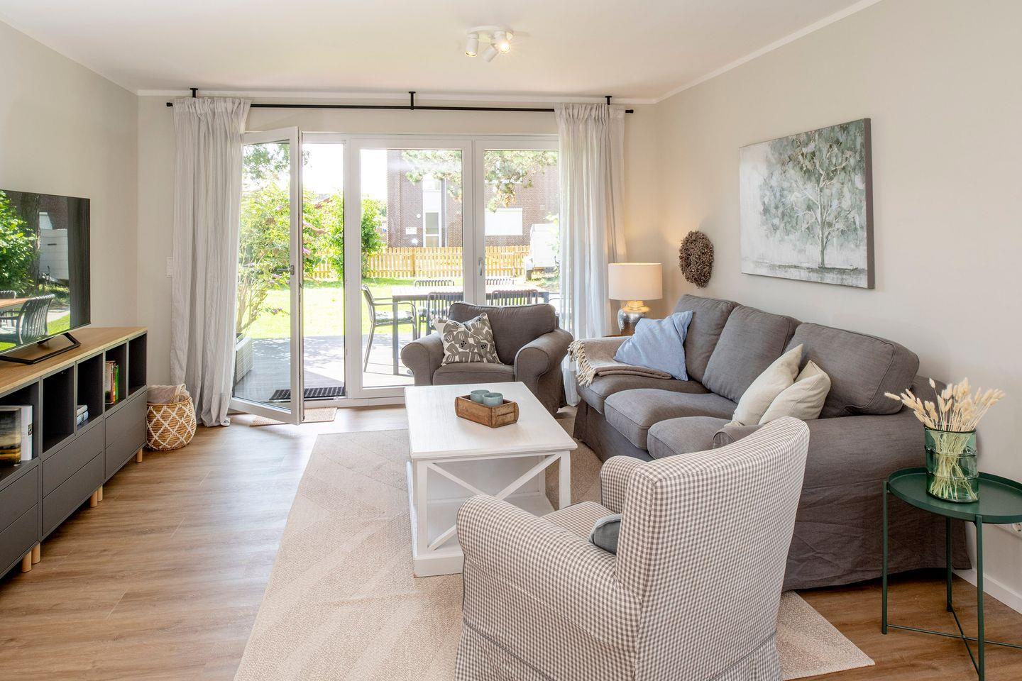 Modern renovierte Doppelhaushälfte MEERTIED 'West' auf Langeoog mit Garten, Terrasse und Nähe zum Strand.