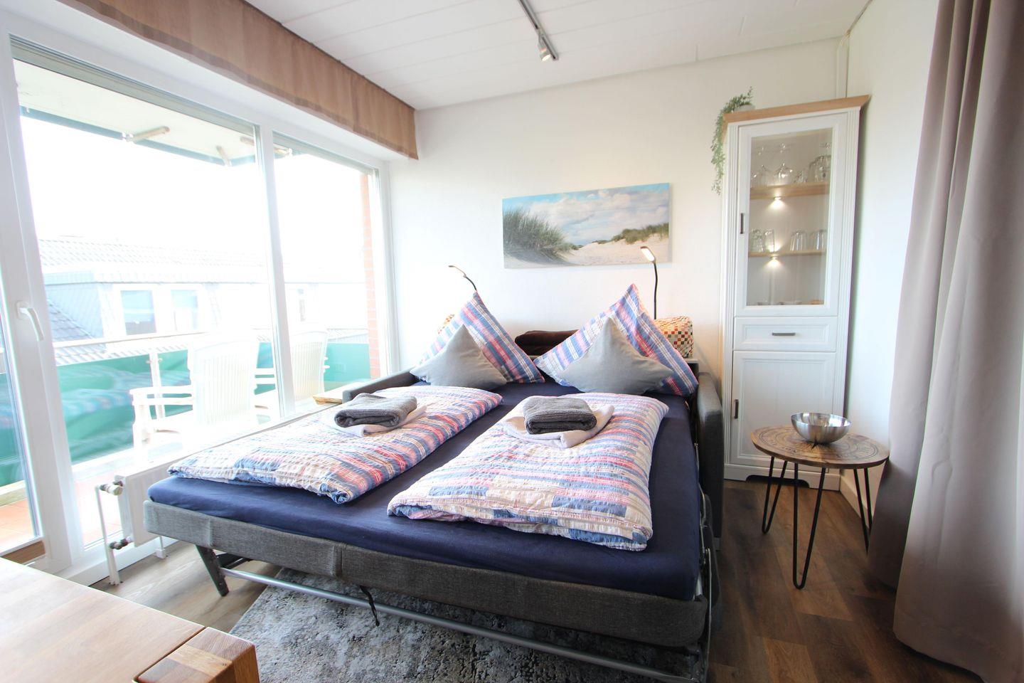 Die Wohnung verfügt u.a. über ein Wohnzimmer mit Schlafcouch und einer Liegefläche von ca. 160 cm x 200 cm.