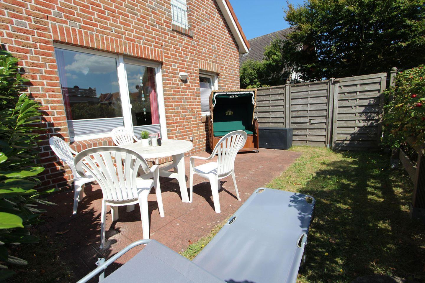 Gemütliche Ferienwohnung Backbord auf Langeoog mit Terrasse und WLAN für erholsame Urlaubstage.