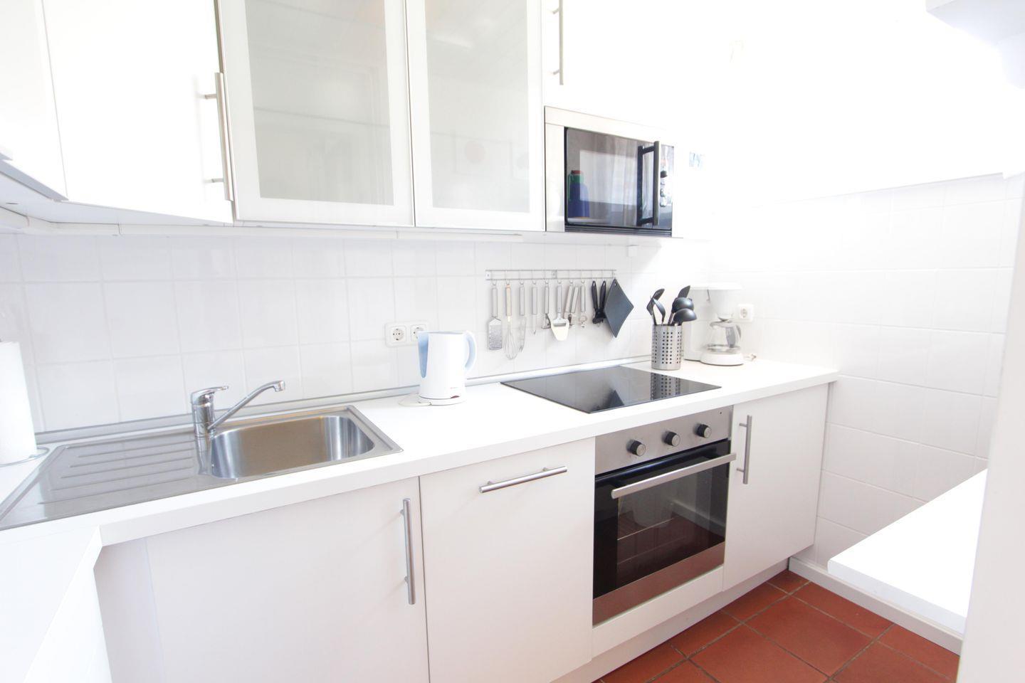Küche: voll ausgestattet mit Geschirrspüler, Kühlschrank und vielen weiteren Küchenhelfern, großer Esstisch mit Sitzbank gegenüber der Küche