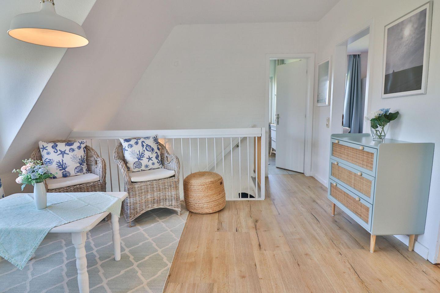 Zur Wohnung gehört eine Diele mit weiterer gemütlicher Sitzgelegenheit, und im EG ein Flurbereich mit Garderobe und Gäste-WC.