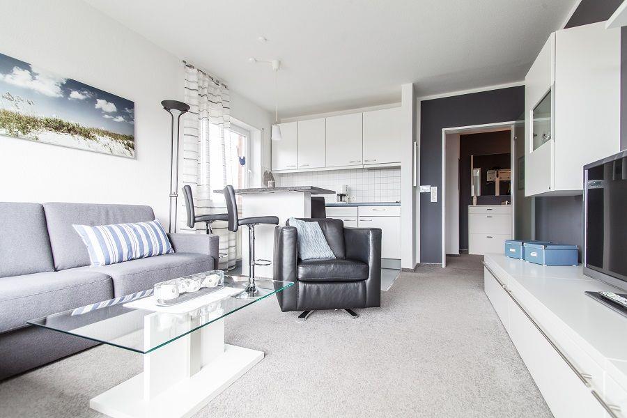 Die Wohnung liegt im 2. OG eines Mehrfamilienhauses mitten im Herzen von Langeoog. Die Wohnung bietet auf ca. 50 m² Platz für bis zu 2 Personen mit Baby. Wohnzimmer mit gemütlicher L-Couch, TV und Übergang zum Balkon. Auf dem Balkon stehen Ihnen in den warmen Monaten Möbel mit Auflagen zur Verfügung und ein toller Ausblick zum Wahrzeichen Langeoogs. Küchenzeile mit Geschirrspüler und Kochfeld. Im Schlafzimmer befindet sich ein modernes Boxspringbett mit den Maßen 180 cm x 200 cm, dort ist auch genug Platz für das Babyreisebett. Badezimmer mit Badewanne und WC.