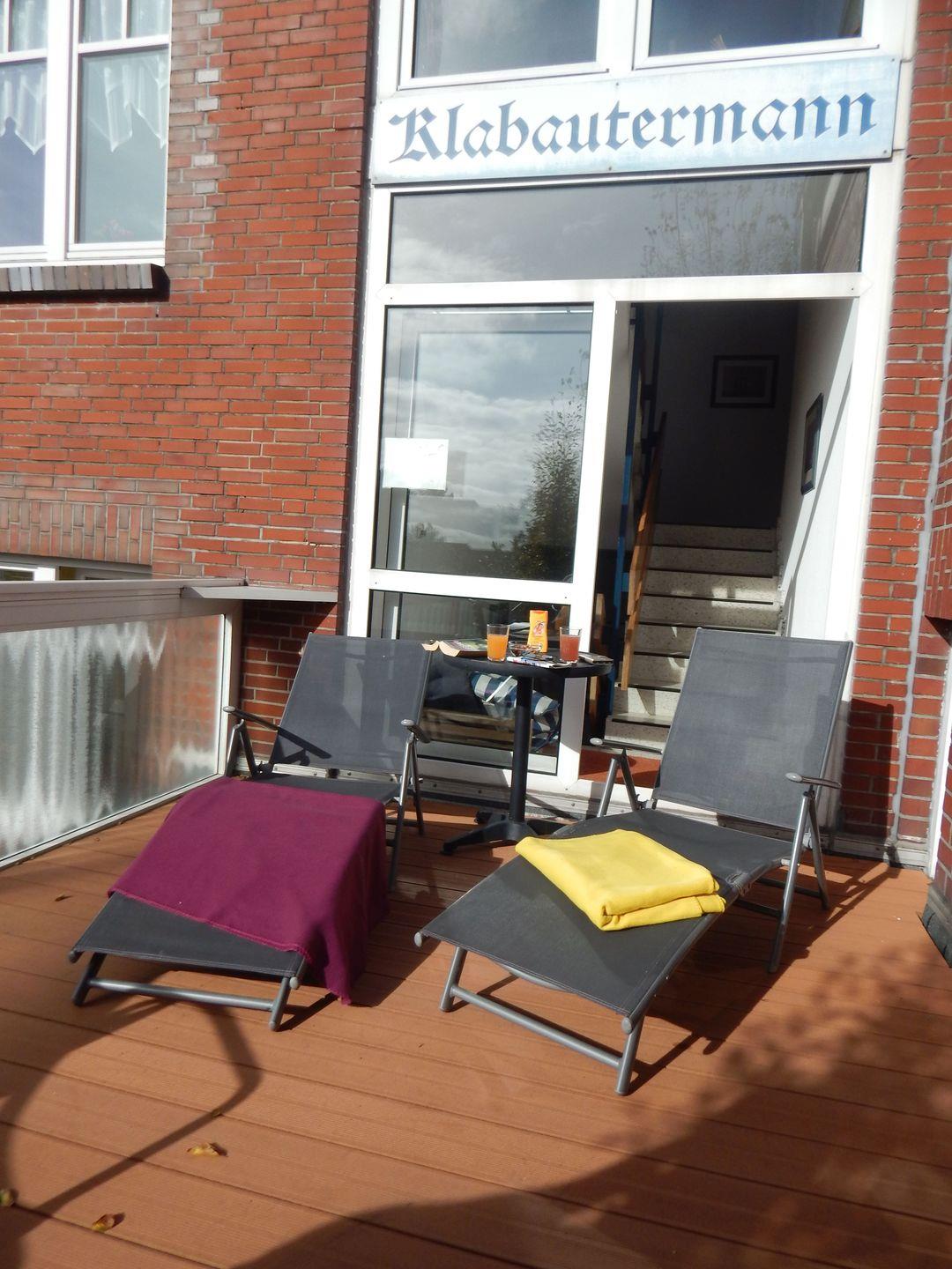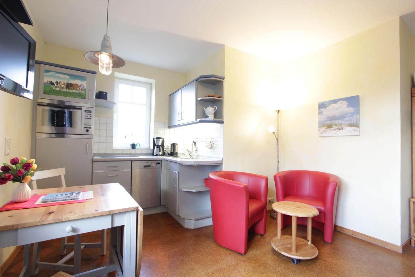 Gemütliche Ferienwohnung Klabautermann 7 auf Langeoog mit WLAN, Gemeinschaftsterrasse und voll ausgestatteter Küchenzeile.