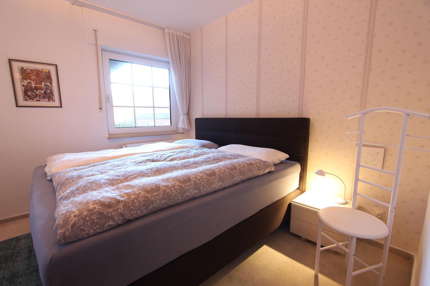 Ferienwohnung "MeeresZeit" für bis zu 4 Personen, komfortables Schlafzimmer mit einem hochwertigen "Schlaraffia" Boxspringbett (TFK-Matratze 19 cm H3, Topper Geltex) mit den Maßen 180 cm x 200 cm sowie ein Schlafsofa im Wohnzimmer, offene voll ausgestattete Wohnküche mit modernen Geräten