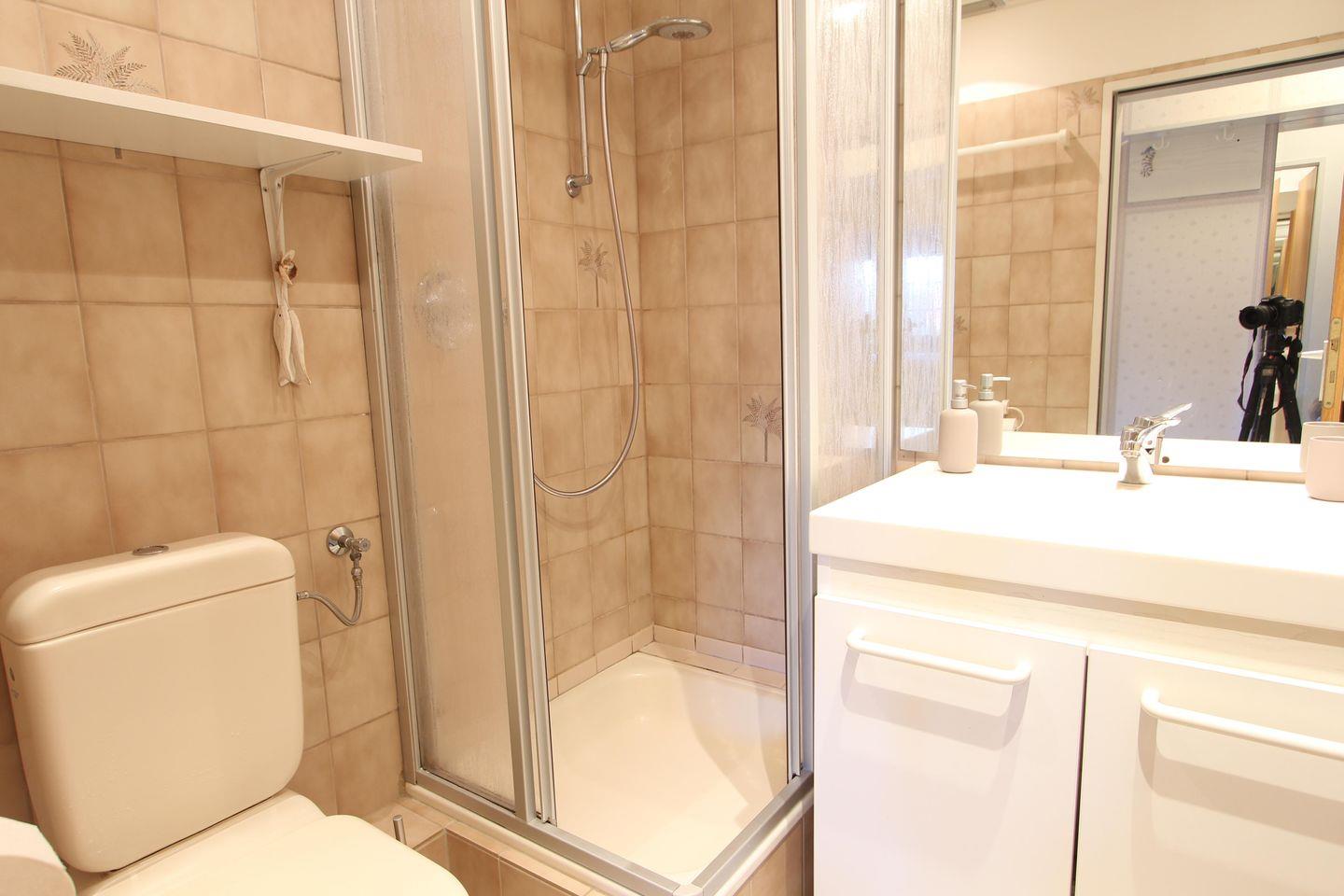 Das Badezimmer verfügt über eine Dusche mit WC.