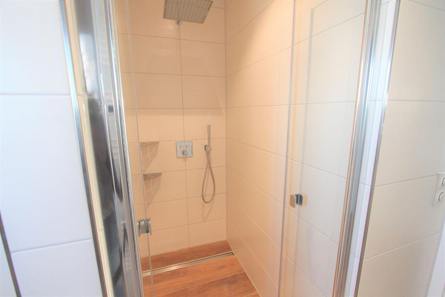 Tageslichtbadezimmer mit Regendusche und WC.