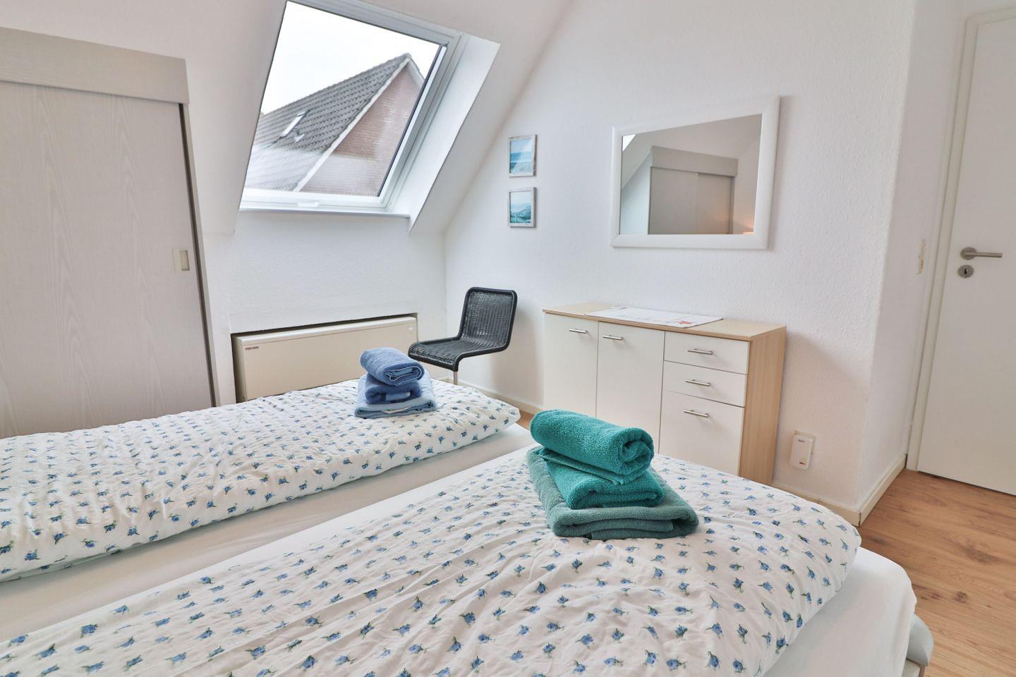 Haus Winter – Wohnung 3 bietet Ihnen ein komfortables Zuhause für Ihre Zeit auf Langeoog. Die Wohnung befindet sich im ersten Stock des Hauses Winter in der Gartenstraße 8 und ist für bis zu vier Personen ausgelegt. Mit insgesamt drei Zimmern, darunter zwei separate Schlafzimmer, jeweils eins mit Doppelbett (180 x 190 cm) und das andere mit zwei Einzelbetten (je 90 x 200 cm) ausgestattet und ca. 65 m² eignet sich die Unterkunft besonders für Familien oder befreundete Paare, die Wert auf Privatsphäre und Gemütlichkeit legen.