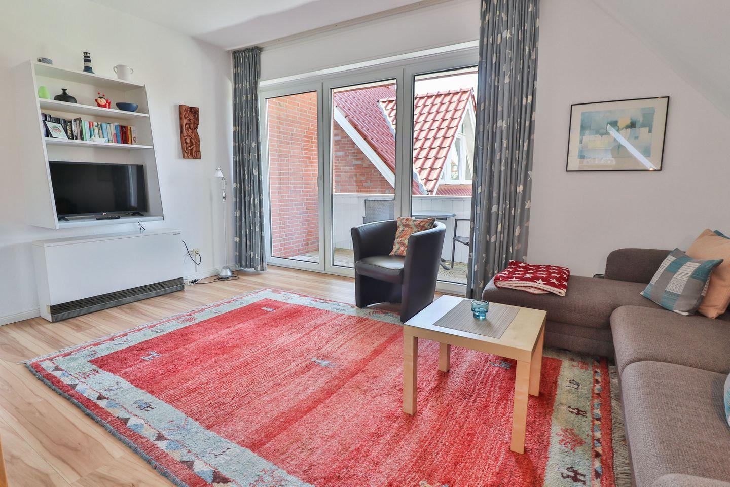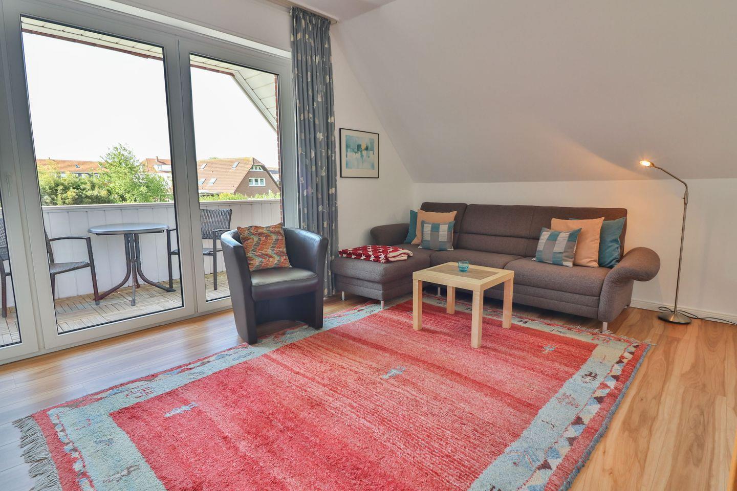 Gemütliche Ferienwohnung mit Balkon auf der Nordseeinsel Langeoog, ideal für Familien und Paare.