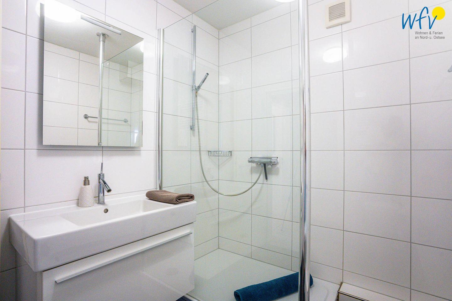 Das elegante Badezimmer - u.a. mit Dusche und Handtuchheizung - sorgt für weiteren Wohnkomfort.