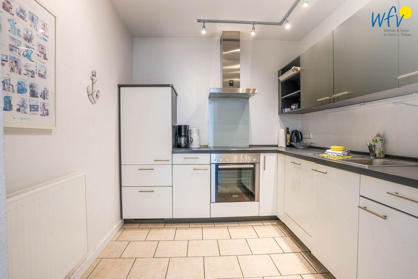 Nach der Fahrradtour oder dem Strandtag lädt das helle Wohn-/Esszimmer zum Entspannen ein. Es ist ausgestattet mit einer freundlichen Essecke im Landhausstil sowie einer bequemen Sitzecke mit TV, DVD-Player (DVD`s) und HiFi-Anlage (CD´s). Für die gemütliche Urlaubslektüre oder gesellige Spieleabende stehen einige Bücher und Spiele bereit. Warme Sonnenstrahlen genießen Sie auf dem großen Südbalkon, der sich an das Wohnzimmer anschließt. Perfekt für erholsame Stunden an der wohltuenden Nordseeluft!