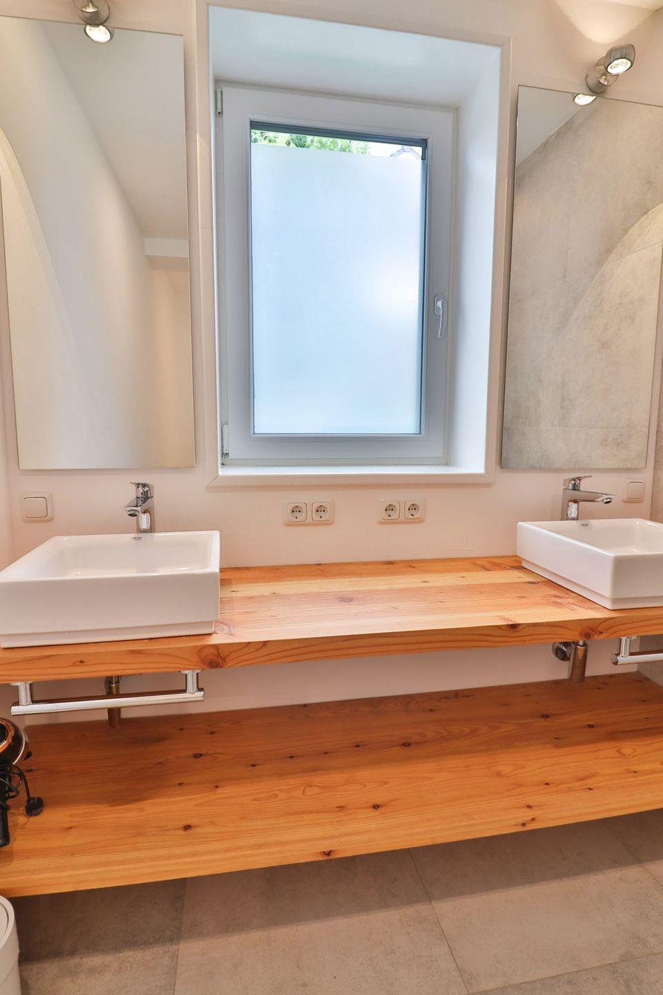 Drei geschmackvoll eingerichtete Schlafzimmer sorgen für erholsame Nächte: Ein Zimmer verfügt über ein Doppelbett (ca. 180 x 200 cm), ein weiteres über zwei Einzelbetten (je 90 x 200 cm) und ein drittes über ein Etagenbett für Kinder (je 90 x 200 cm). Alle Schlafzimmer sind mit Kleiderschränken ausgestattet und verfügen über Außenrollos, die für angenehme Dunkelheit und Privatsphäre sorgen. Zwei moderne Badezimmer, jeweils mit bodengleicher, offener Dusche, Waschbecken und WC, bieten zusätzlichen Komfort und ausreichend Platz für alle Gäste.