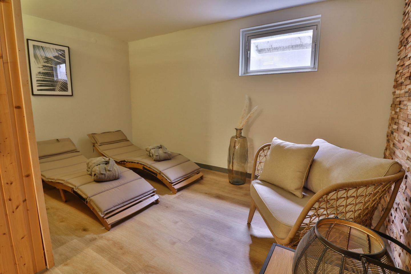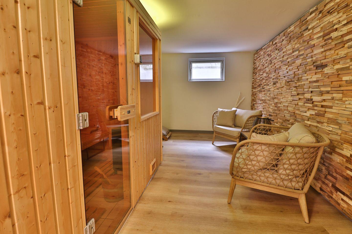Ein besonderes Highlight ist der Wellnessbereich im Untergeschoss des Hauses mit eigener Sauna und Ruheraum – ideal, um es sich nach einem aktiven Tag gutgehen zu lassen. Auf dieser Etage befindet sich praktischerweise auch das zweite Badezimmer, das über eine große Dusche verfügt und die Wellnessoase somit erweitert. Auch Bademäntel dürfen für Ihren Saunagang natürlich nicht fehlen.