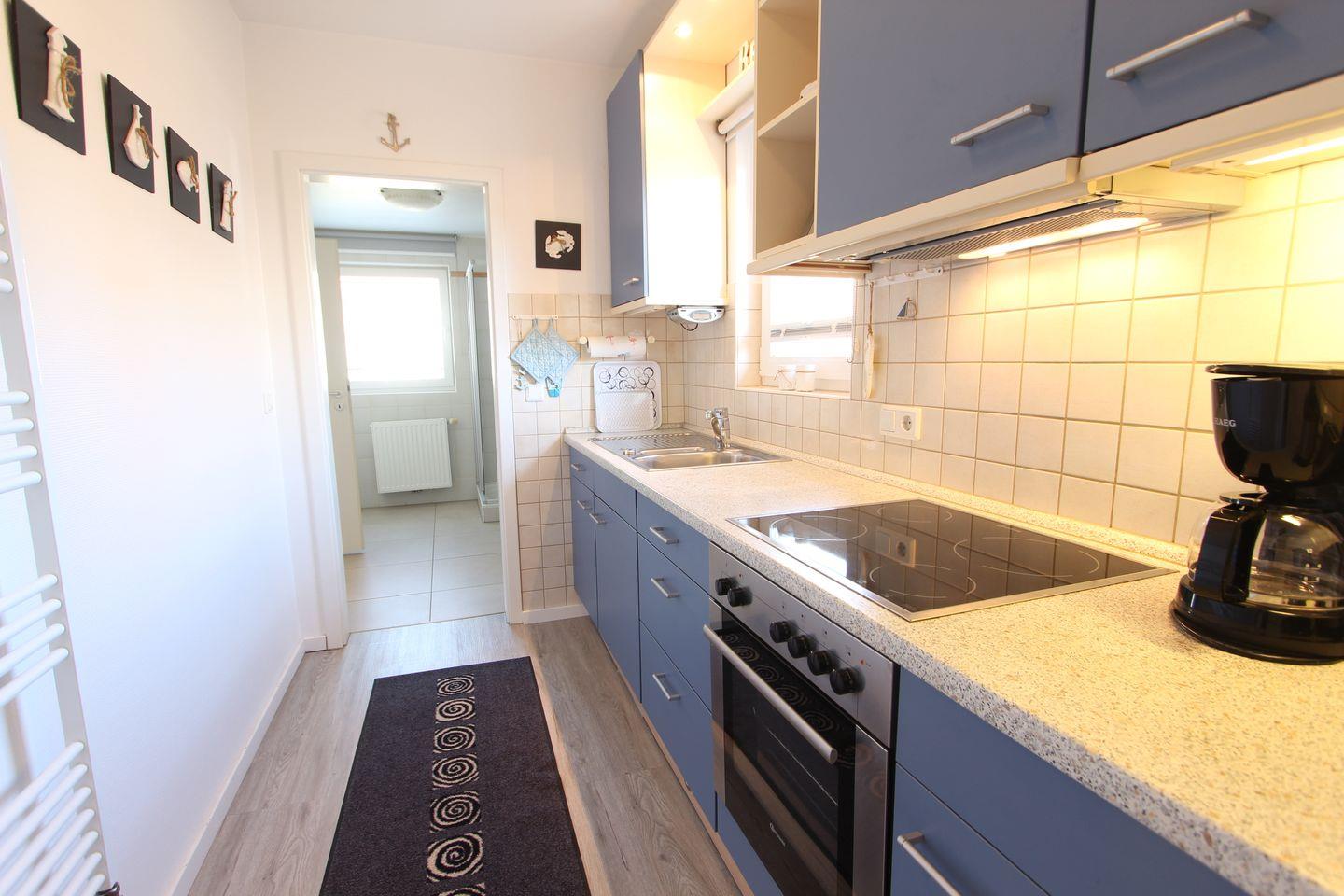 Das Apartment verfügt über einen hellen Wohnraum, ein separates Schlafzimmer, ein geräumiges Duschbad sowie eine gut ausgestattete Küche – perfekt für entspannte Tage zwischen Strand, Dünen und Meeresluft.