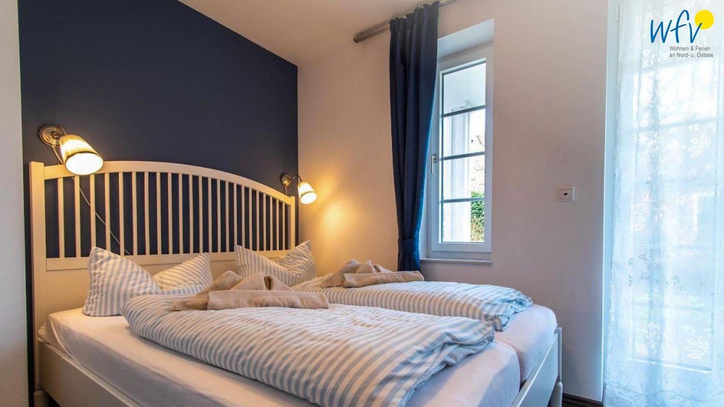 Zwei separate und freundlich eingerichtete Schlafzimmer mit Doppelbett (180 x 200 cm + 160 x 200 cm) bieten Gelegenheit zum Rückzug und versprechen eine angenehme Nachtruhe. Komfortable Leselampen am Bett ermöglichen gemütliche Stunden mit der Urlaubslektüre.