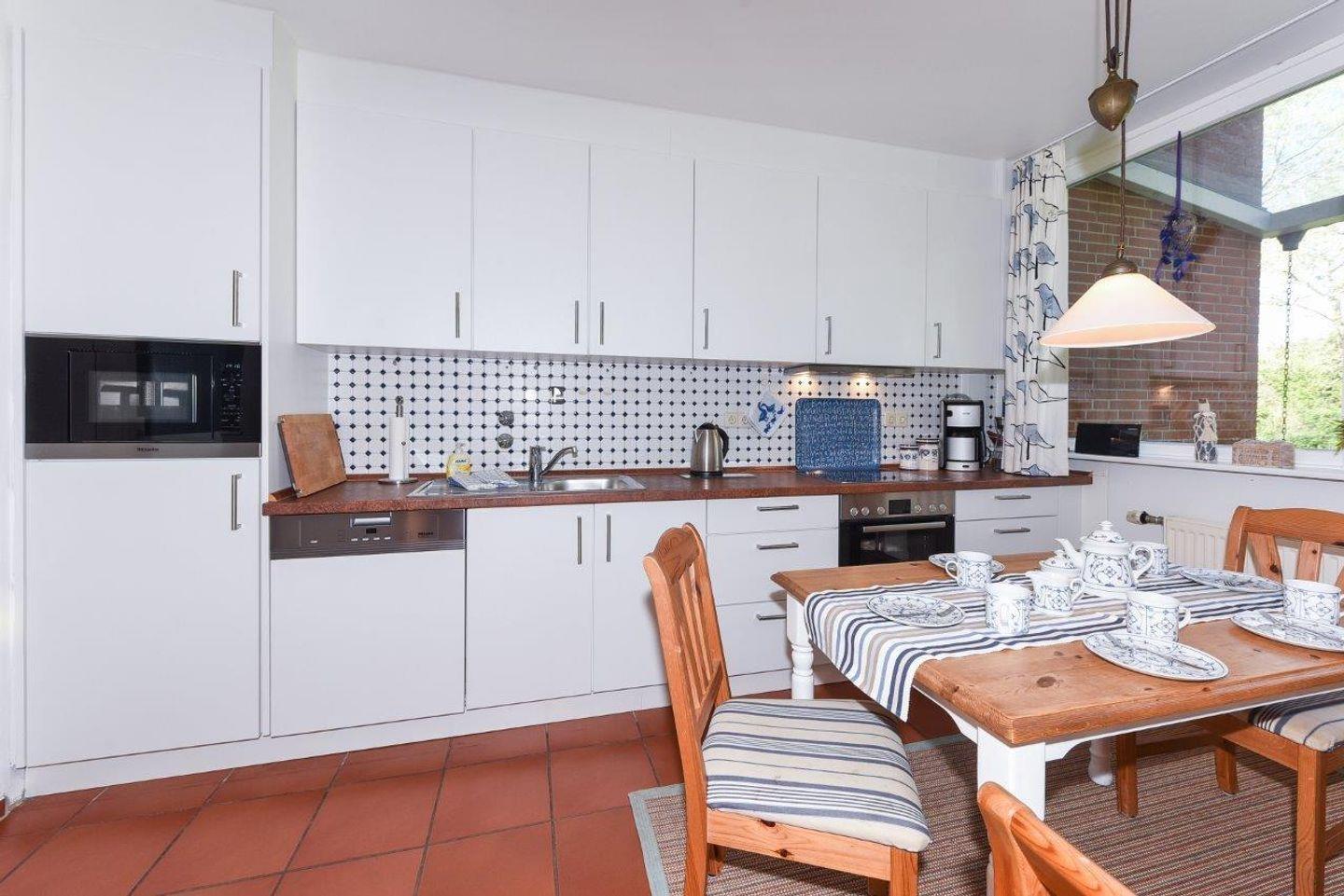 Die separate Küche ist voll ausgestattet und bietet zusätzlich einen weiteren Essplatz. Sie ist modern und funktional gestaltet und verfügt über alle notwendigen Geräte, um auch größere Mahlzeiten zu zaubern.